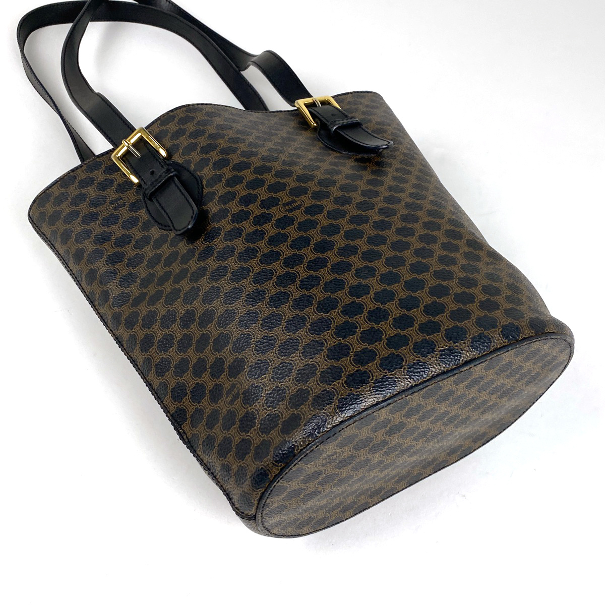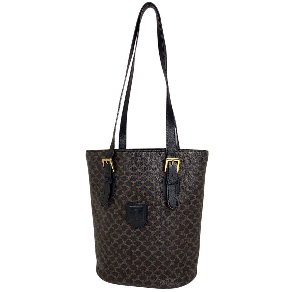 | セリーヌ CELINE マカダム柄 トートバッグ ショルダーバッグ バケツ型 トートバッグ コーティングキャンバス ダークブラウン ブラック レディース 【中古】 |