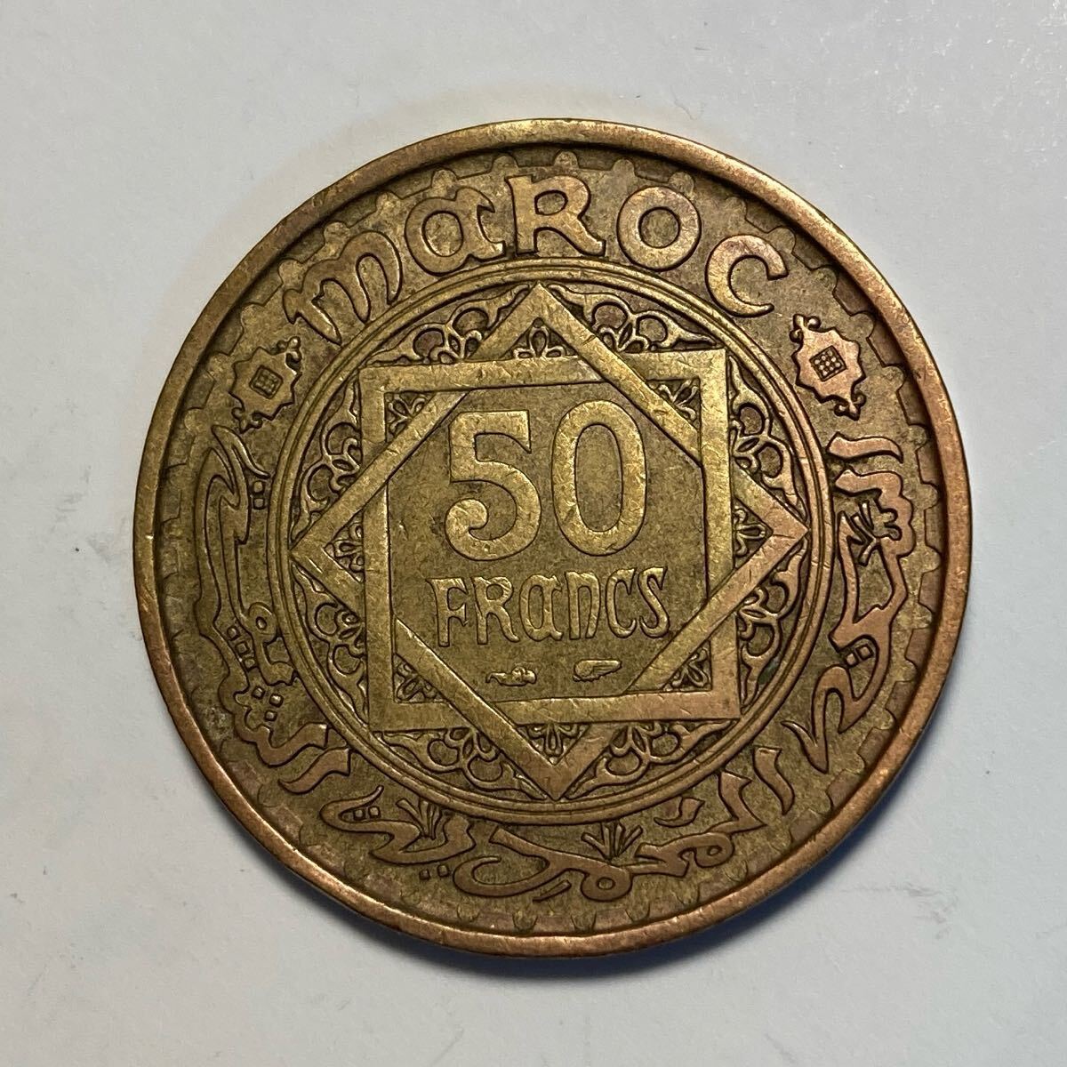フランス保護領モロッコ時代に発行された50フラン硬貨