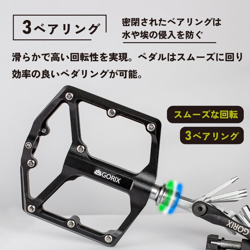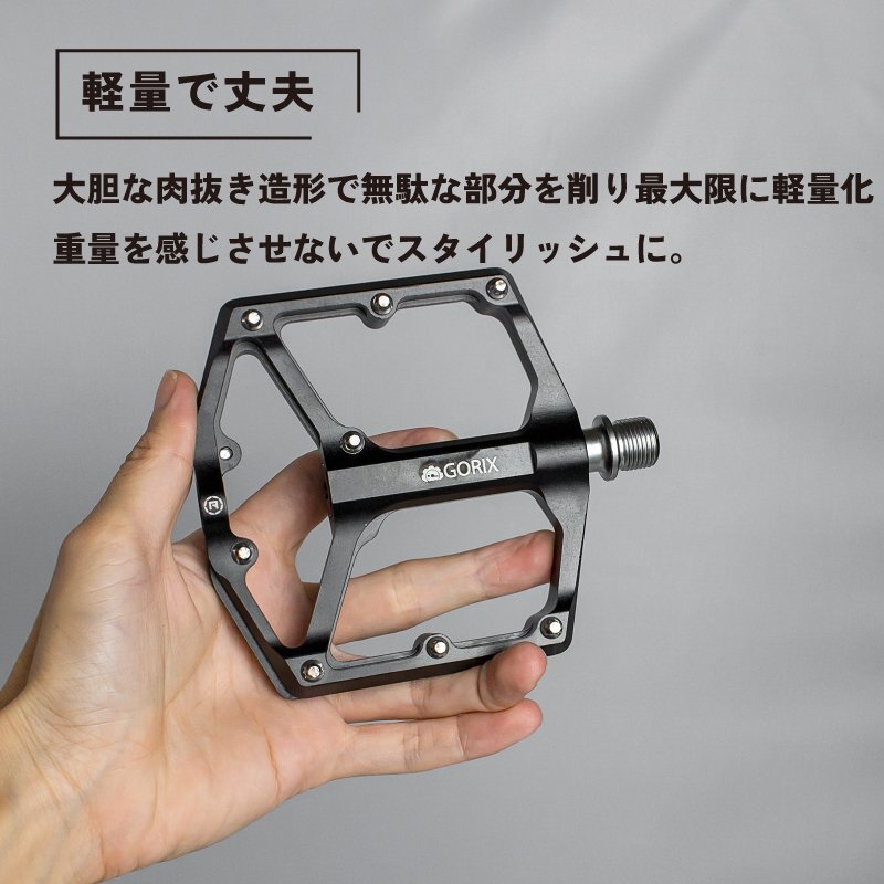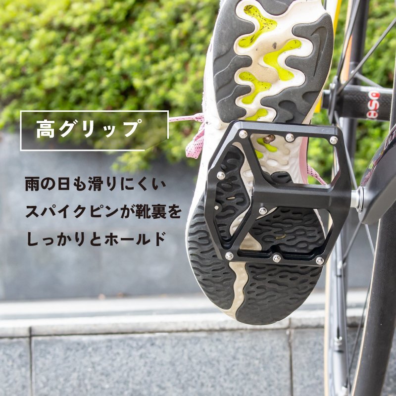 街乗りらしいカジュアルなデザイン。幅広設計で漕ぎやすいペダル。 クロスバイク、マウンテンバイク、ロードバイク、ミニベロ、電動自転車などに最適なマルチペダル。 通勤や街のり、ツーリングなどにも使える実用的なフラットペダルです! 大胆に肉抜き加工が施された形状で軽量で丈夫なアルミ素材を採用。 CNC加工で表面がスムーズで傷がなく、耐摩耗性、耐腐食性がよいです。 踏みやすく食いつきがスパイクピンはしっかりと靴下をホールドします。 3ベアリングは滑らかで高い回転性を実現。 [フラットペダル] シンプルでどんな自転車にもマッチするマットブラック。 カジュアルで街乗りらしいペダルです。 [滑り止めピン] 片面に7個ピンを設置し滑り止め効果を発揮します。 ピンはペダルの踏み込み位置に設置しています。 通常のピンの無いペダルより喰いつきがよく踏みやすくなります。 [踏み面は幅広] 安定性を向上させるため幅広でワイドな踏み面。 靴との接触部分が広くしっかりと足をホールドし漕ぐ力を逃さない。 しっかり体重を乗せられるので効率の良いペダリングが可能。 ペダルの安定感やグリップ力などを十分に発揮。 [ベアリング3つ] 3つのベアリングが内蔵されていて非常に滑らかで高い回転性を実現。 優れた耐久性を持ち、摩擦を最小限に抑えるので回転が滑らかで漕ぎやすい。 また密封されたベアリングは水やほこりの侵入を防ぐ。 ペダルはスムーズに回り効率の良いペダリングに。 [軽量] ボディは大胆にくり抜いて軽量化を実現。くり抜き部分が多くて汚れも付着しにくい。 見た目もスッキリして重さを感じさせずスマートな印象を与えます。 [耐久性] アルミ合金素材のフラットペダルは耐久性が良く錆びにも強い。 CNC加工で耐摩耗性、耐腐食性がよいです。 とても実用的なフラットペダル。 [様々な自転車に] 標準の9/16 インチのネジ径で様々な自転車に装着可能。 ロードバイクやクロスバイク、MTB、ミニベロやピスト、ままちゃり、電動自転車に。 六角レンチ(8mm)もしくは自転車のペダルレンチで脱着できます。 商品内容自転車用フラットペダル左右セット サイズ長さ100x幅104x厚み最大17mm、軸長60mm 軸径標準9/16インチ(ネジ径 約14.3mm) 重量約336g/ペア 材質アルミ合金本体、クロモリ鋼軸 ベアリング密封3ベアリング ※使い始めのペダルは回転が渋くなっている事がございます。特に冬場は内側のグリスが硬くなり、通常より渋くなってしまいますが ご使用されるうちに馴染みが出て軽くなります。 商品は入荷によりキズがある場合があります。 傷や細かい汚れが気になる方や神経質な方は入札をお控え下さい。 入荷時期により予告無く一部仕様変更する場合が有ります。 カラーはディスプレイ種類環境等により実物と異なって見える場合がございます。 |