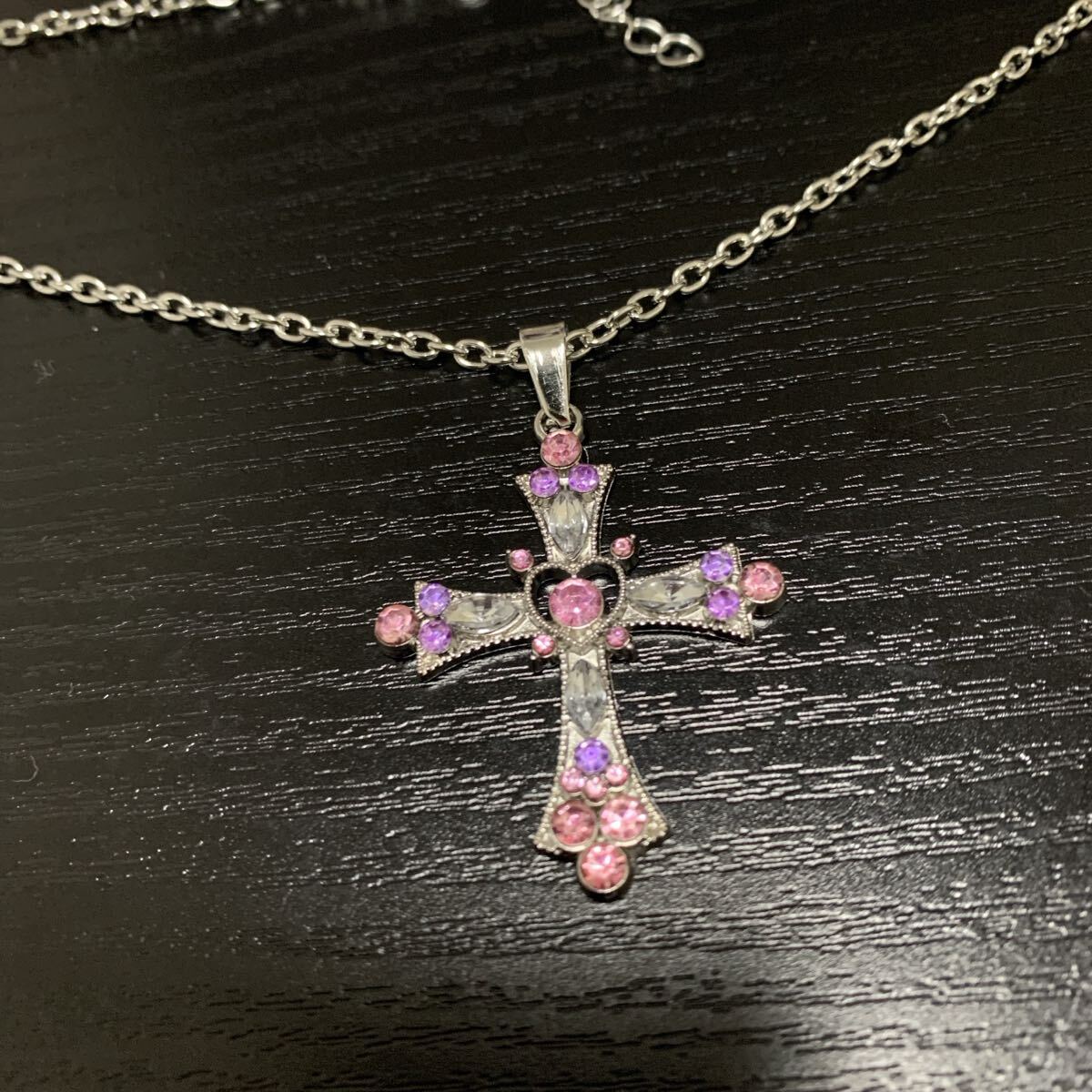 レディース アクセ アクセサリー ペンダント ネックレス 十字架 ゴスロリ ロリータ フェミニン ガーリー ロック ストリート 地雷 地雷系 量産 量産型 ピンク 紫 パープル