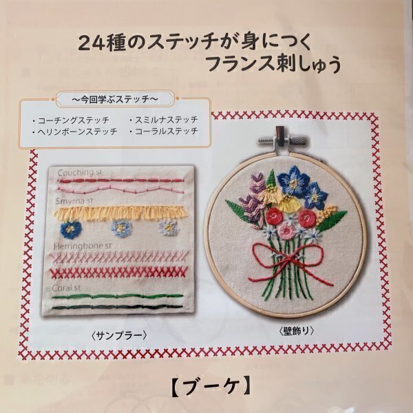 ZB105-3 ブーケ 24種のステッチが身につくフランス刺しゅうコレクション 刺繍キット  壁飾り サンプラー 刺繍枠付き 5269円