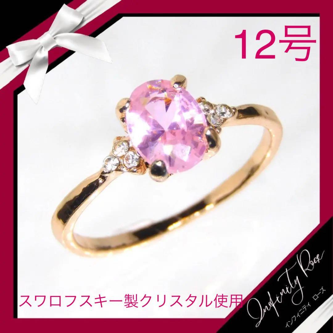 #ピンクゴールドピンククリスタル可愛い姫リング