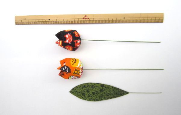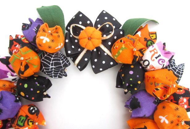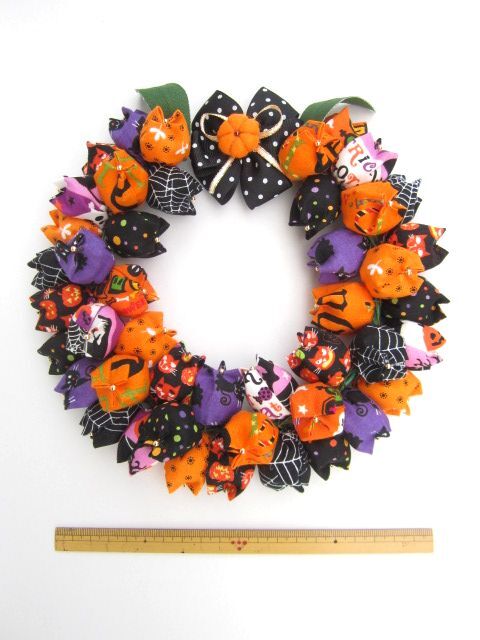 ・ ハロウィン柄チューリップの花いっぱいでリースを作ってみました。