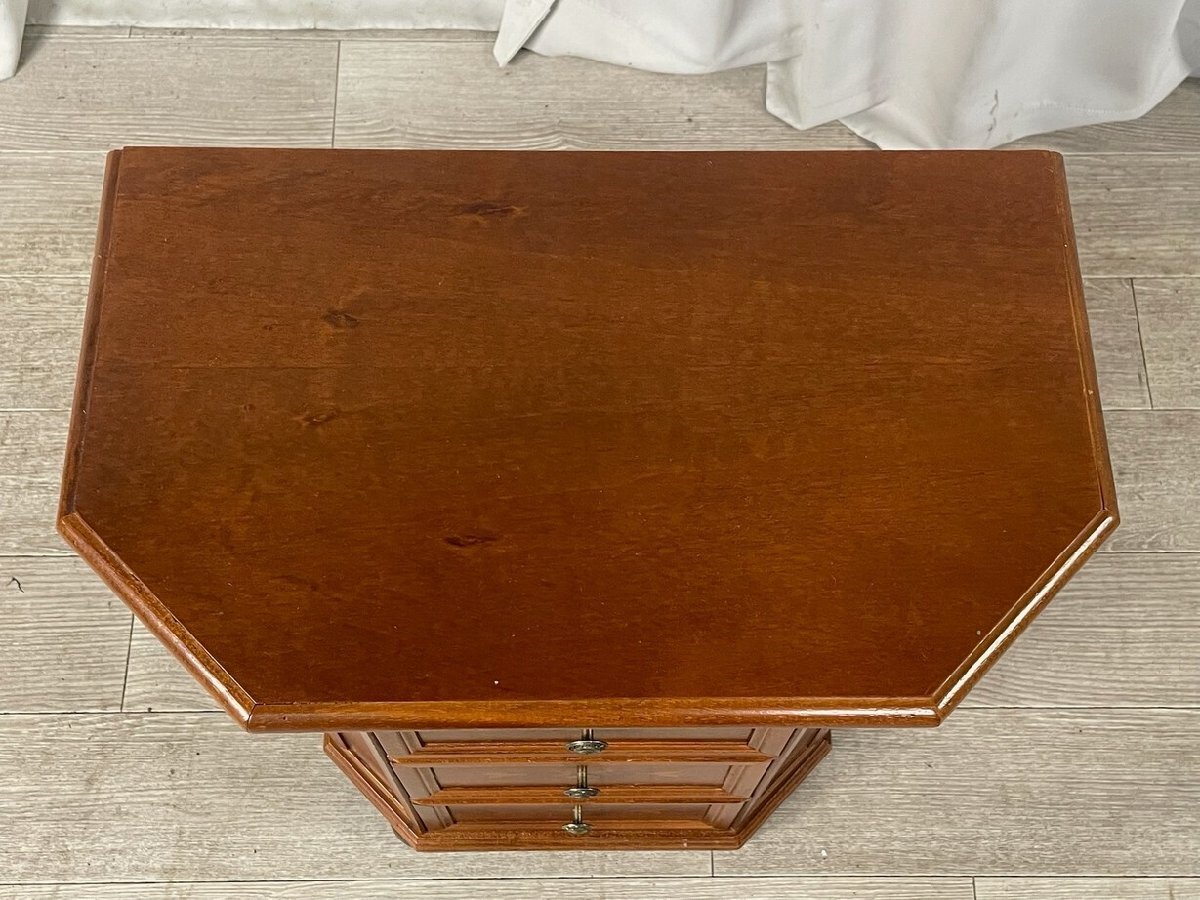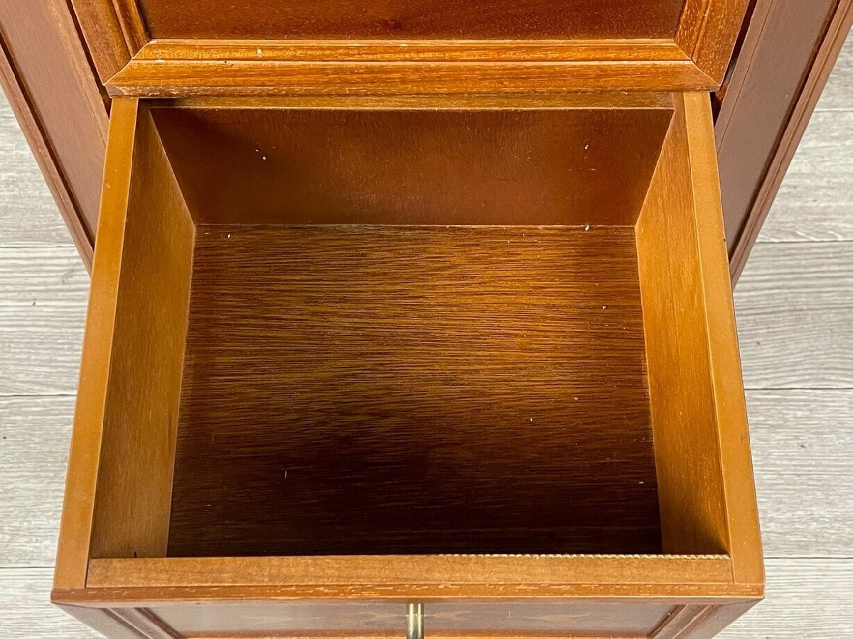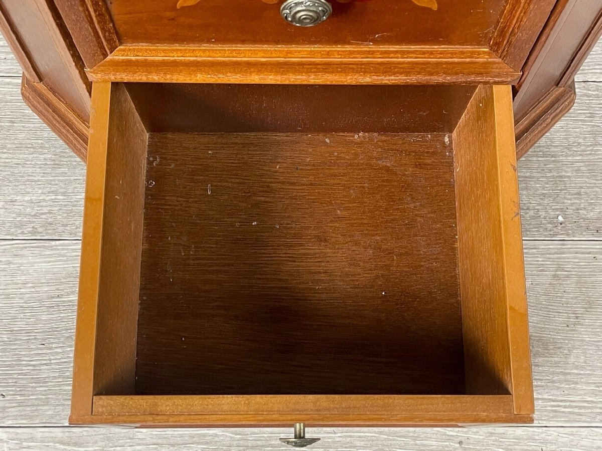 ※本品は神奈川県発の商品です。 当ストアでは静岡発と神奈川発の商品があります。まとめて取引や直接引取をご検討されている場合はご注意ください。 外形寸法:幅50×奥行き30×高さ73cm ※寸法や重量は実測値ですので誤差が生じる可能性があります。予めご了承下さい。 マーケトリー 象嵌 / Marquetry 薄い木をパズルのように組み合わせ、木の持つ風合い・色合い・木目を生かしながら、自然の色の濃淡で光と影を表現していく木で出来た絵画のことを いいます。とても繊細な装飾で、ヨーロッパでは昔から家具や楽器の装飾(象嵌)として親しまれてきました。 状態 若干の傷汚れはあります。 商品保管場所(神奈川県秦野市)の当方倉庫にて直接手渡しも可能です。 車両の積み込みを当方で行う、又は手伝うことはできません。商品を積載可能な車両で積込み作業ができる方必要人数でお越し下さいませ。 取り置き期間等ありますので下記の発送詳細をご参照ください。 | ||||||||||||||||||||||||||||||||||||||||||||||||||||||||||||||||||||||||||||||||||||||||||||||||||||||||||||||||||||||||||||||||||||||||||||||||||||||||||||||||||||||||||||||||||||||||||||||||||||||||||||||||||||||||||||||||
