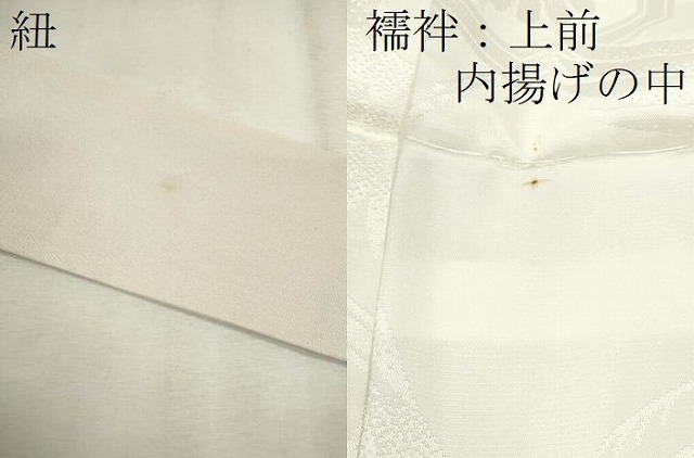 着物【表地:正絹・胴裏:化繊】の状態は接写画像のように紐に薄い汚れがございますが その他表地は特に目立ったシミ汚れなどもなく大変良い状態です。 長襦袢【袷・化繊】の状態は接写画像のように上前の内揚げの中に薄い汚れがございますが その他特に目立ったシミ汚れなどもなく大変良い状態です。 大変上質な逸品になります。 お安く出品致しますので、是非この機会にいかがでしょうか? |