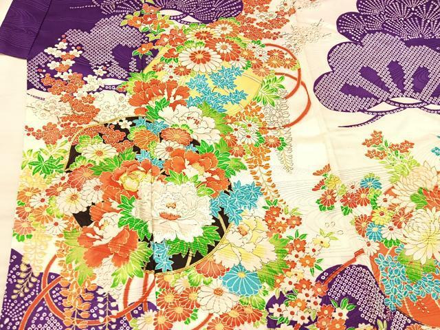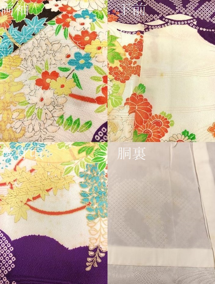 【祝着】 身丈 123.5cm(肩から) 裄丈 50.5cm(肩上げ 2cm) 袖丈 72.5cm 縫込み 2.5cm 袖幅 30.5cm 前幅 15.5cm 後幅 24.5cm 着物縫いこみ 内揚げ 0cm (腰上げ 0cm) 裄 お袖側 約3cm 身頃側 約2cm 《 サイズについてはこちら 》 |