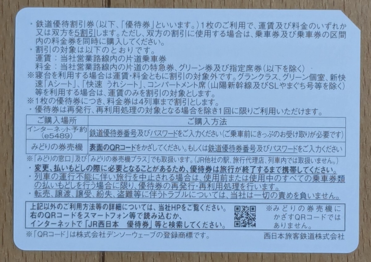 商品画像に添付のとおりですので、よくご確認の上ご検討ください。未使用の株主優待になりますので、ノークレームノーリターンでのお取引となります。