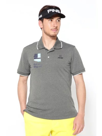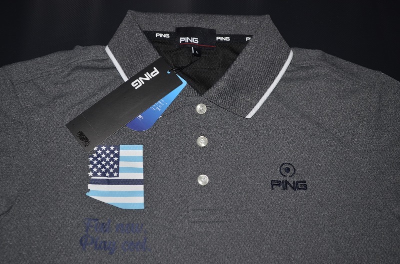 新品 Lサイズ PING ピン ゴルフ 星条旗プリント 半袖ポロシャツ 吸水速乾、ストレッチ、高通気、軽量