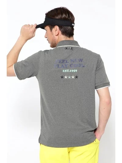 星条旗プリントフットボールグリット半袖ポロシャツ。吸水速乾性に優れたクリックドライを採用した、