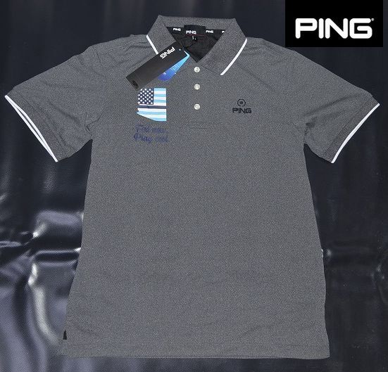 新品 Lサイズ PING ピン ゴルフ 星条旗プリント フットボールグリット 半袖ポロシャツ