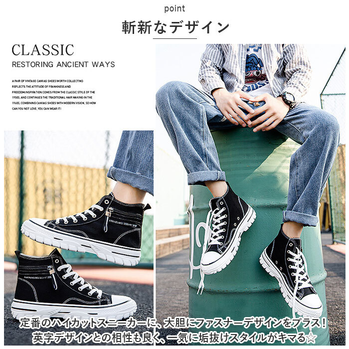 商品説明・・斬新なサイドファスナーデザイン☆ メンズ ハイカット厚底スニーカーが登場。