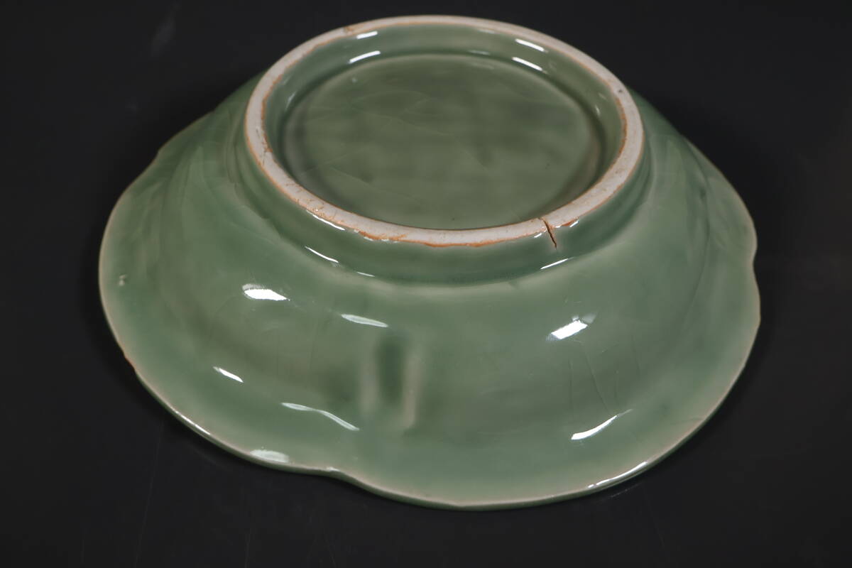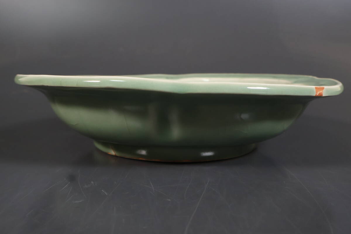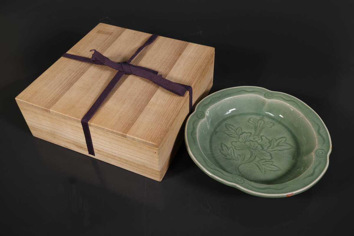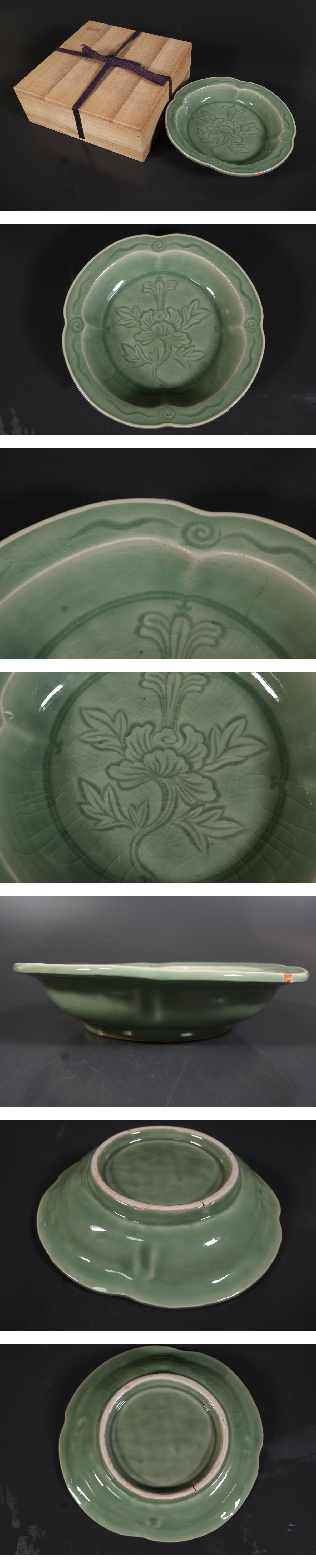 【和】(A3435) 時代古作 鍋島青磁 花文印刻皿 平鉢 保管箱有 江戸