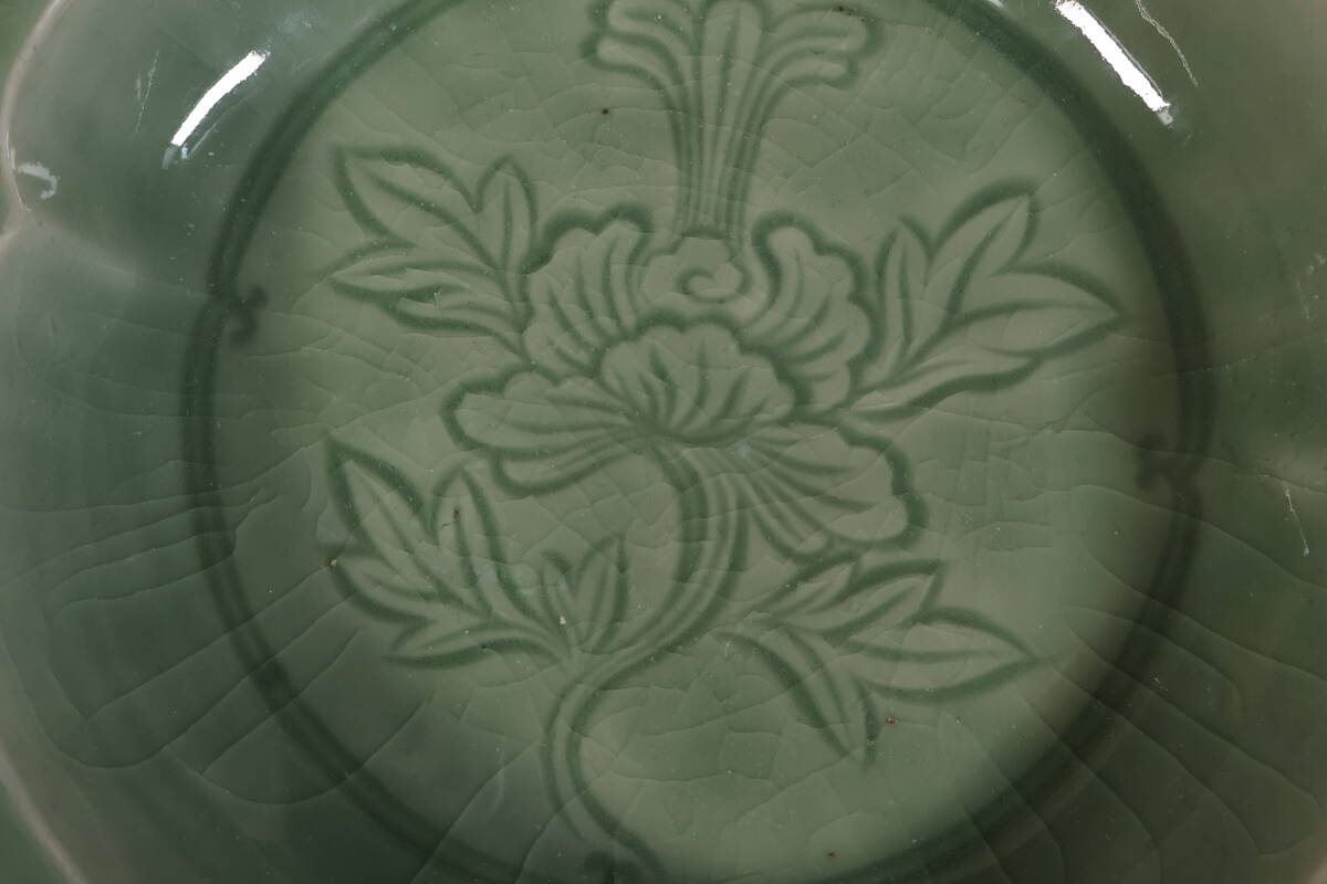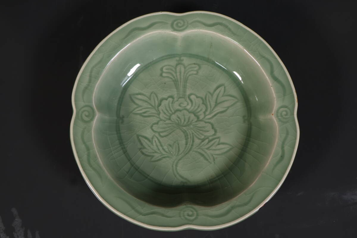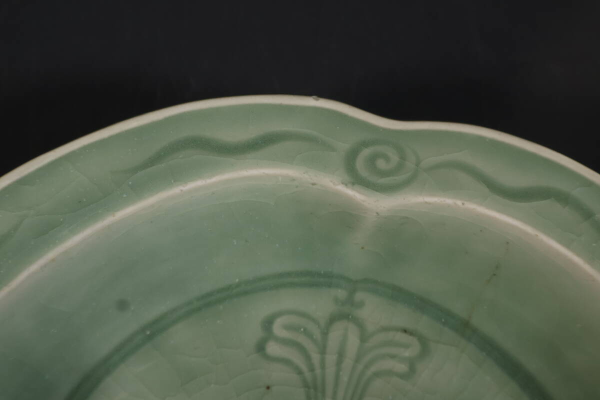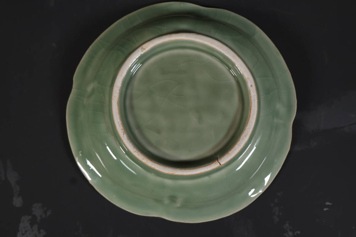 【和】(A3435) 時代古作 鍋島青磁 花文印刻皿 平鉢 保管箱有 江戸