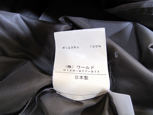 とても状態が良い中古品。傷、汚れはほとんどありません。 | ※ 状態は、弊社基準により表記をさせて頂いております。 ※ リユース商品の為、表示しきれないダメージなどある場合もございます。 ※ 実店舗業務の運営上、質問にお時間をいただく場合や主観的なご質問にはお答えできかねる場合がございます。 サイズ | | サイズ : 42 【肩幅】 : 37.5cm 【身幅】 : 49cm 【着丈】 : 84.5cm 【袖丈】 : 56.5cm すべて平置きでの採寸となっております。 素人採寸ですので、ご参考程度にお願いします。 付属品 | ※ 出品商品はお写真に写るものが全てとなります。 | ※ ハンガー・スタンド等、備品を用いて撮影している場合がございますが、備品は付属いたしません。 店舗名 | 四日市店 | 発送について | ゆうパック、もしくは 佐川急便、ヤマト運輸(選択は出来ません) 元払のみの発送です。管理上その他の発送方法には、対応できません。お問い合わせは、ご遠慮願います。 | お支払いについて | 落札金額 + 消費税 + 送料 のお支払いとなります。 | 送料は送料欄にて、お届け先の都道府県をご選択頂き確認をお願い致します。 ※ 離島など別途追加が必要な場合もございます。 ※【お支払方法】銀行振込・代引きには対応しておりません。 同梱について | ※ 発送の拠点が複数ございます。同梱できない場合は個別配送となりますので、ご容赦下さい。 | ご落札の流れ | ヤフオク!ストアが出品した商品を落札した場合、個人が出品した場合とは取引方法が異なります。また、ストアとの取引では商品受け取り後の受け取り連絡は必要ありません。 | >> ヤフオク! リンクはコチラ ご注意事項 | お写真は撮影時の状態です。 | 店頭にて併売しているお品はコンディションが変わる場合もございます。 購入時に著しくコンディションが変わってしまっている場合はご連絡いただければ真摯に対応致します。 お色・状態に関しては、モニター環境や、太陽光・室内ライトなどの環境により、見え方が違う事もございますので、ご理解頂ければ幸いです。 中古品ですのでノークレームノーリターンでお願い致します。 材質タグがある場合は、写真撮影しておりますので そちらでご確認願います。 他店舗でも同時に販売しておりますので、売り切れの際は ご容赦頂ければ幸いです。 |