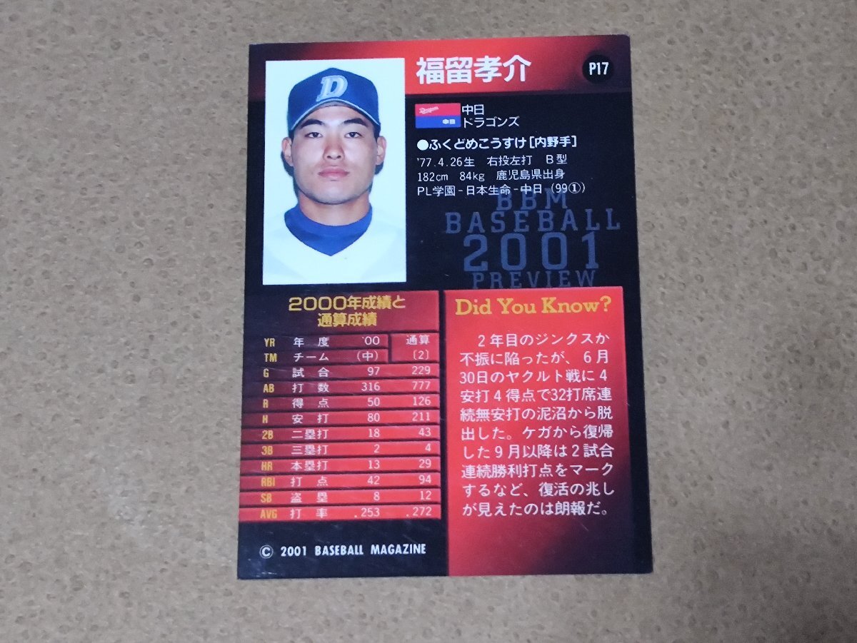 福留孝介 中日ドラゴンズ BBM2001プレビュー