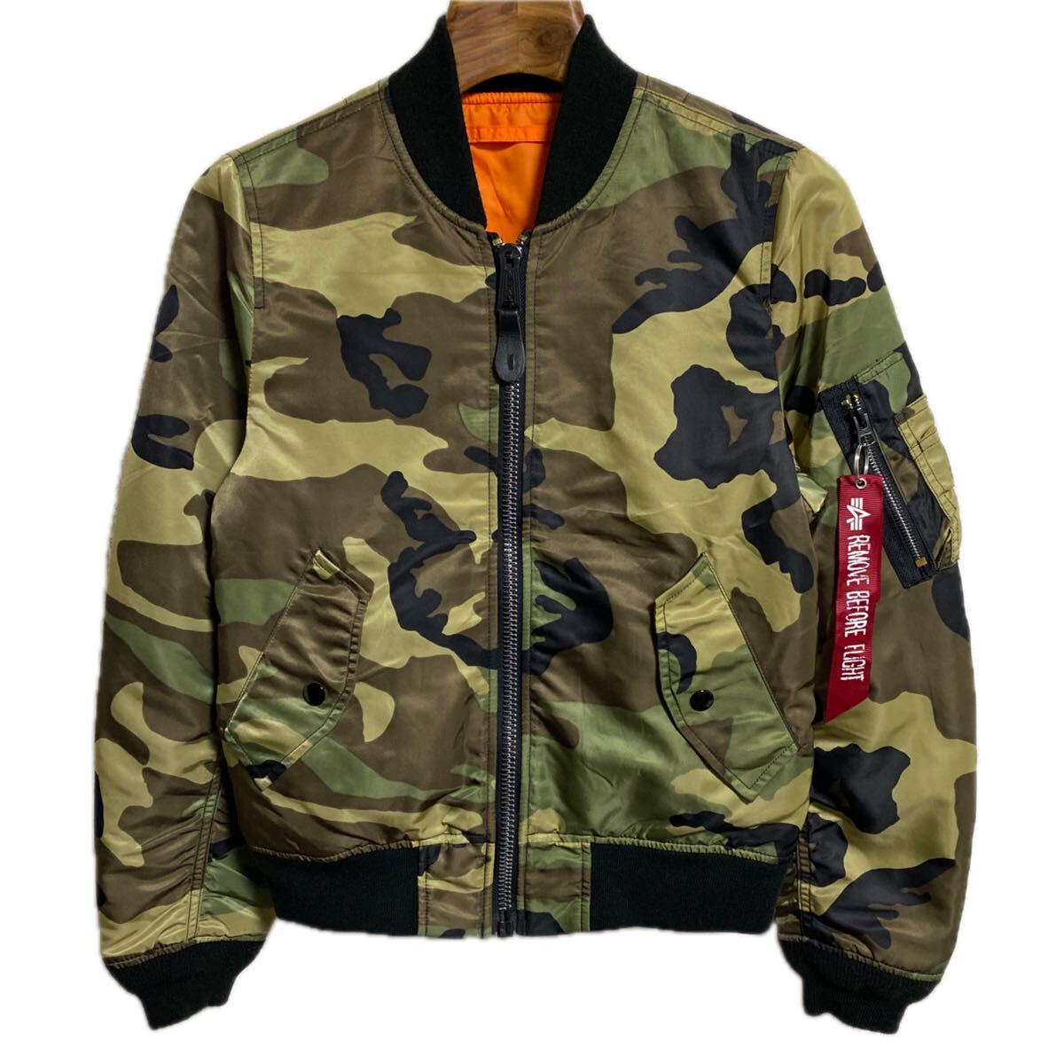[送料無料]ALPHA INDUSTRIES/アルファインダストリーズ/MA-1/リバーシブルフライトジャケット/中綿/ウッドランドカモ/レディース/Sサイズ