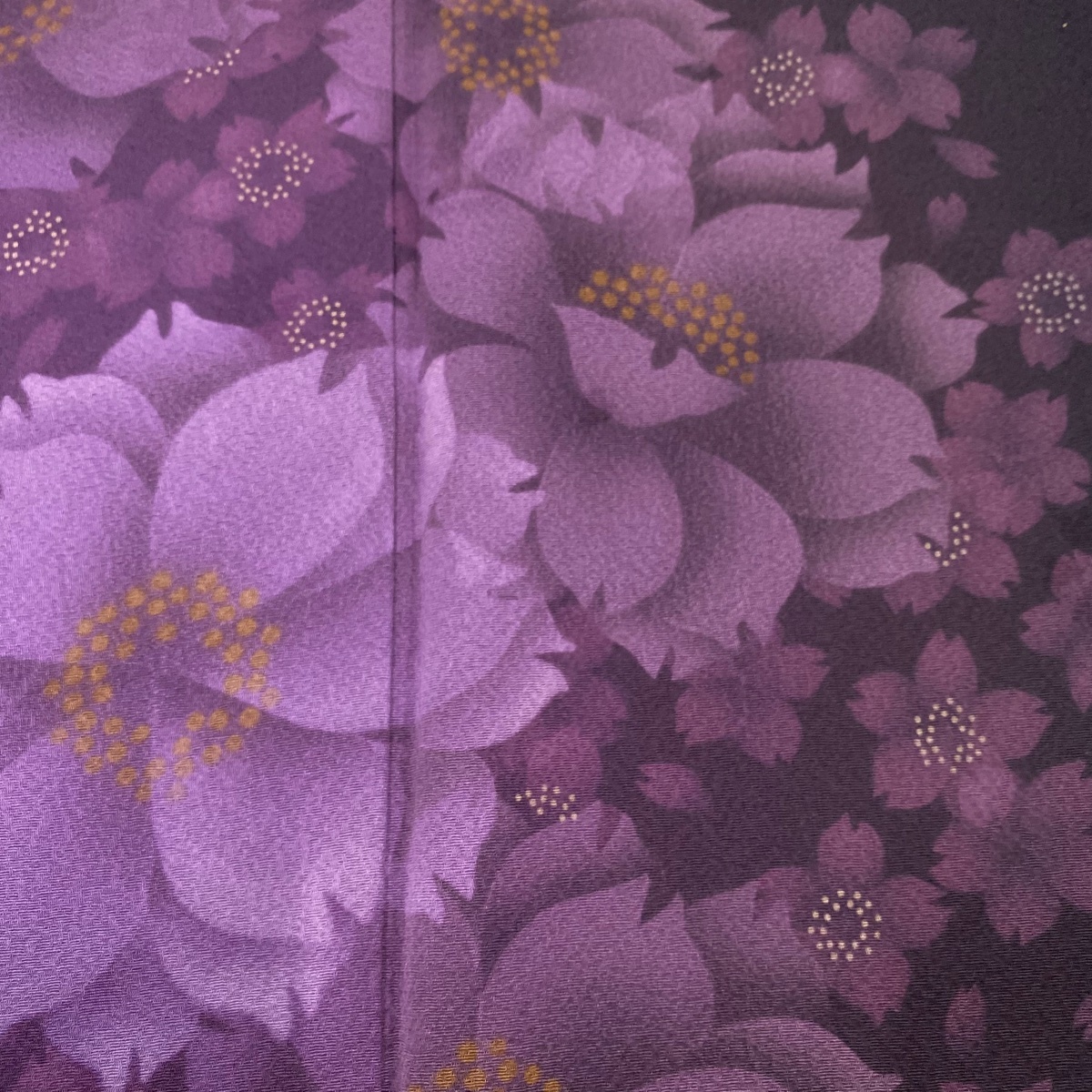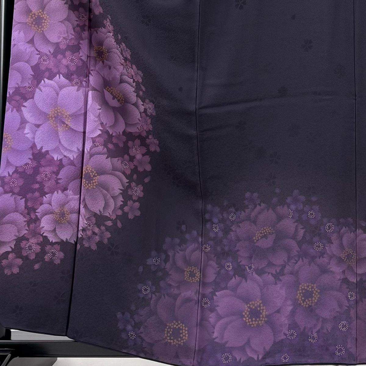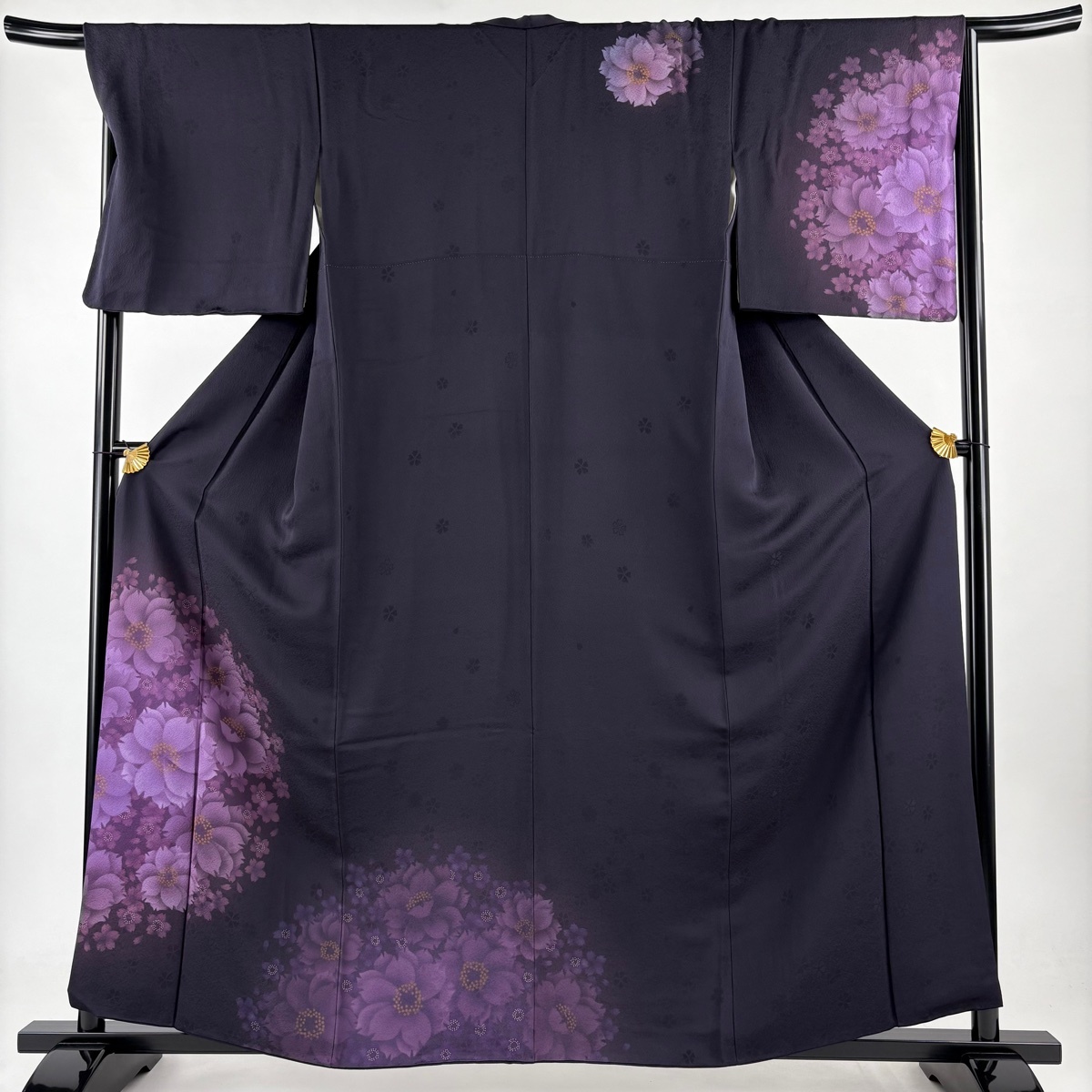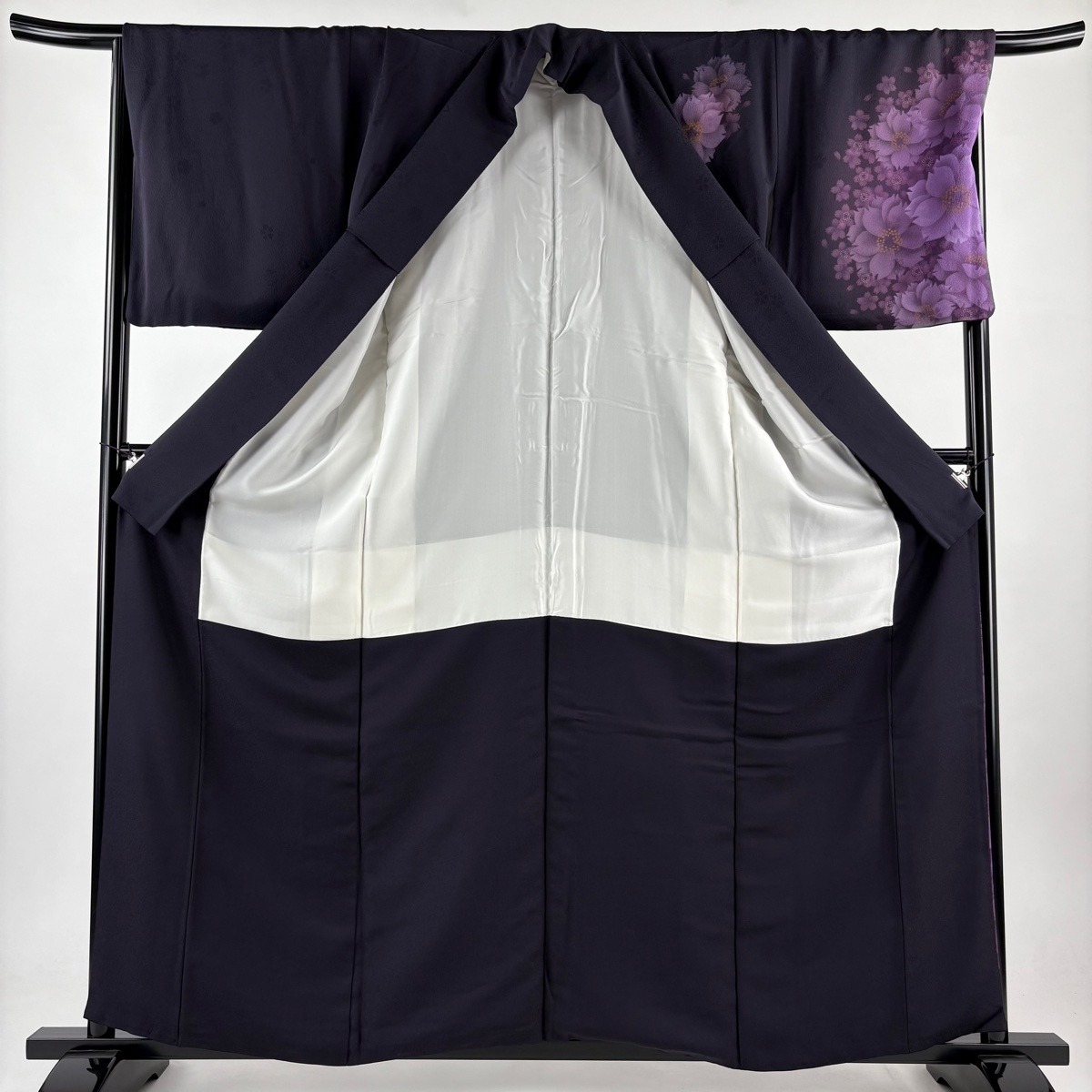| 付下げ 秀品 桜 地紋 墨色 袷 身丈159 裄丈65.5 M 正絹 【中古】 |