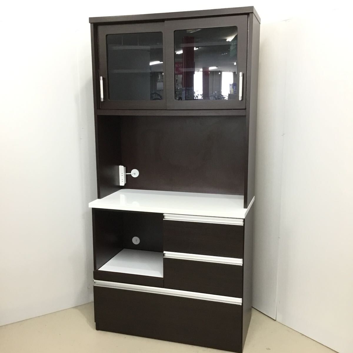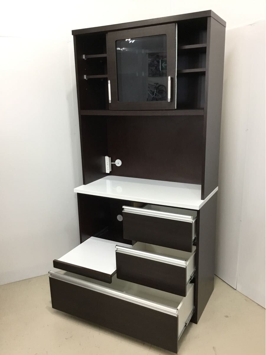 レンジボード付き 食器棚 (6) 幅90cm ダークブラウン 木目調 引き取り可 領収書発行可 【埼玉県より発送】 |
