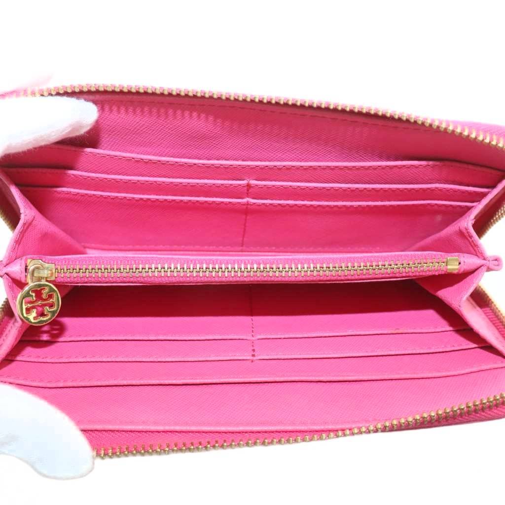 トリーバーチ TORY BURCH 長財布 レザー ラウンドファスナー ロゴ ゴールド金具 ピンク /XZ ■GY11 レディース