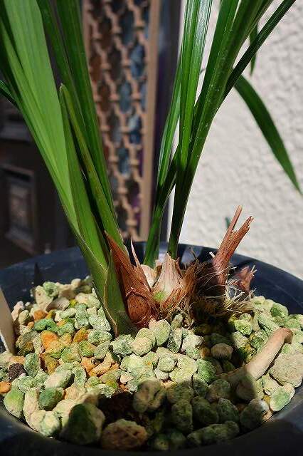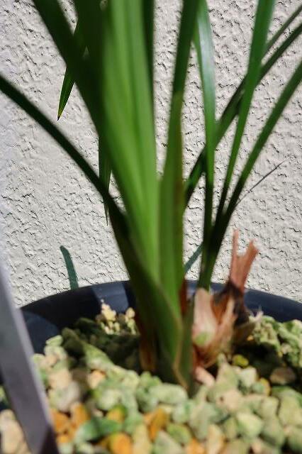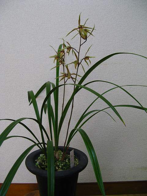 紀州寒蘭 (無名) の更紗系 橋の奥産 此の花は(乙御前)の採集者のkさん ここ3年程前に故人となられました生前に棚の拝見の際に分けて頂いたものです一度見ますと忘れることのない長舌に特徴があり、香りも強いものです。