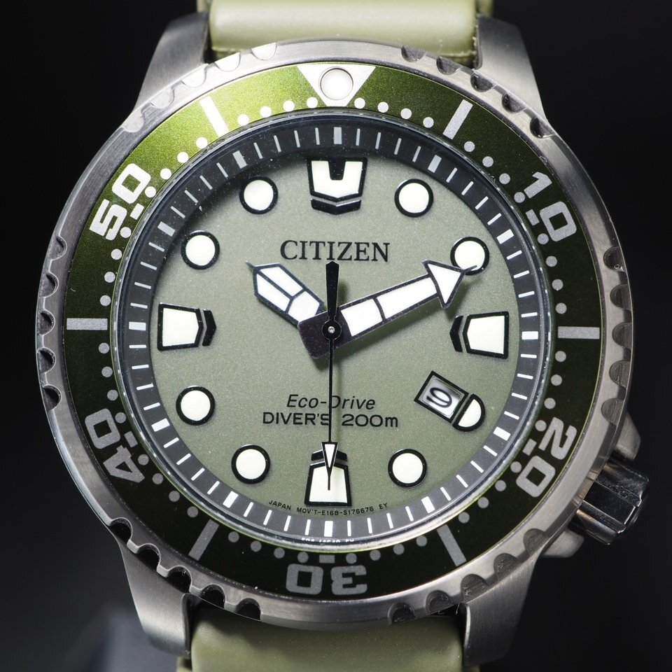 ◆1円~/美品◆ CITIZEN シチズン プロマスター E168-S129061 SS/ラバー ソーラー カーキ 回転ベゼル USED 美品 メンズ 腕時計 「27756」
