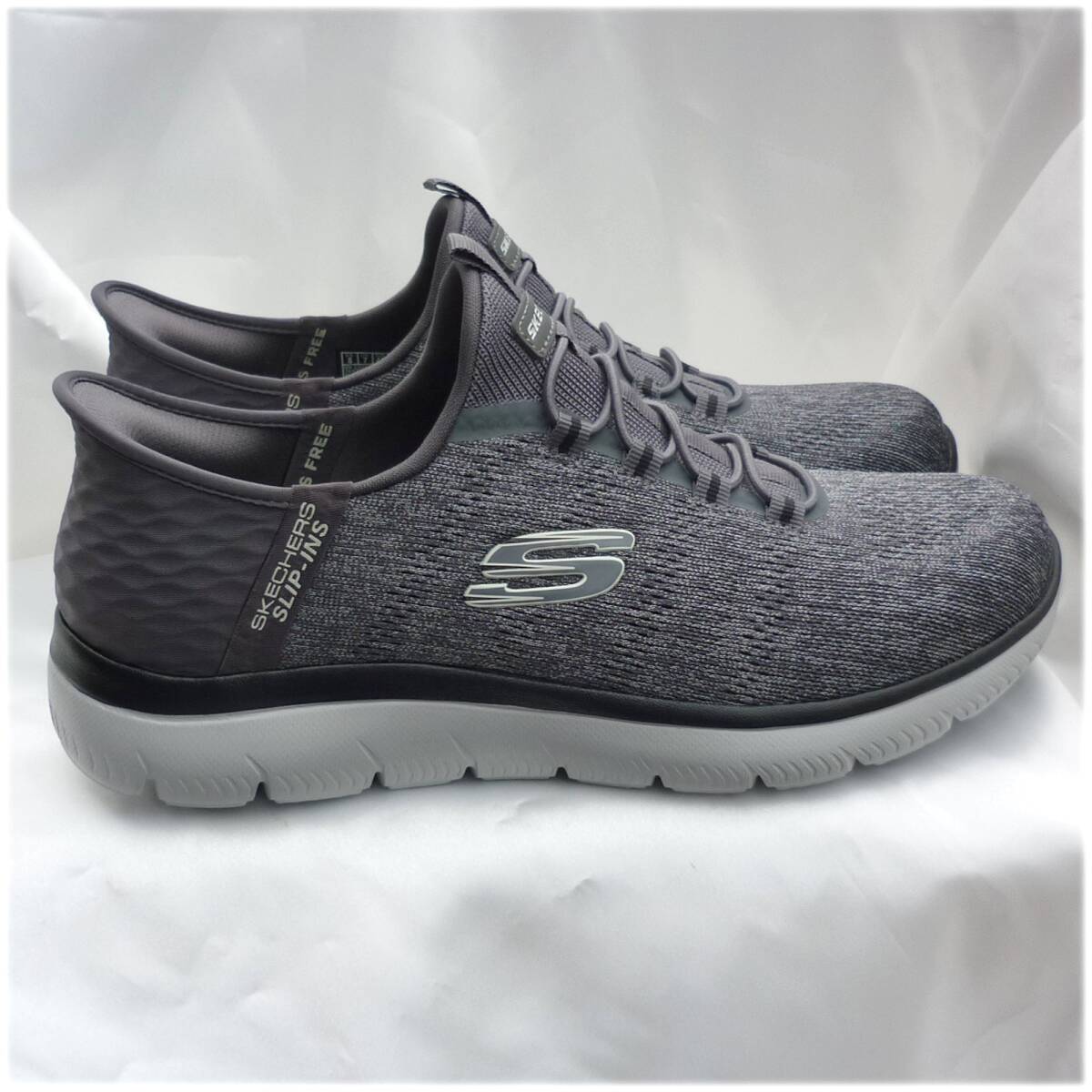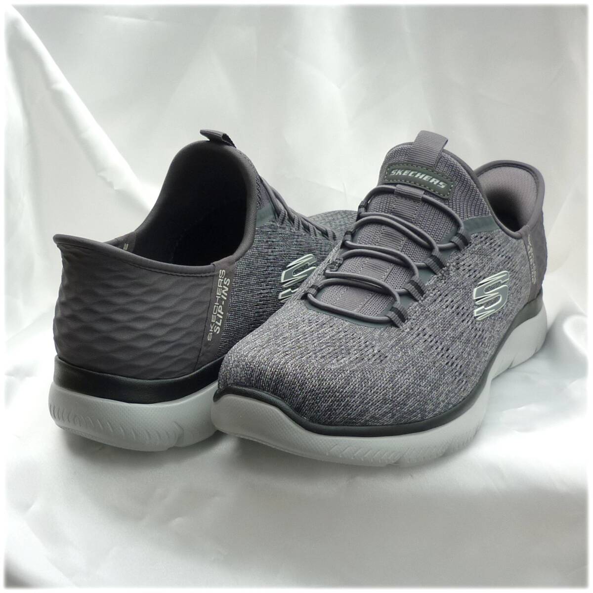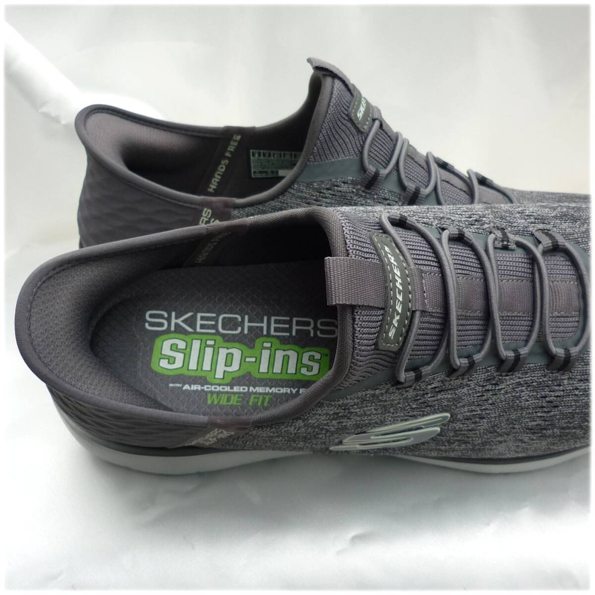 新品未使用品ですが箱なし商品です。試着等された可能性のある靴となりますので神経質なかたのご購入はお控えくださいませ。今、話題のスリップインズです。かがまず履ける。触らず履ける。手を使わず履けます。紐を結ばなくていいスリッポンタイプです。◎愛用者の感想です。ご参考に。「かかと部分にクッションがあり、きっちりフィットするのでとても脱げにくく感じる」「かかとをふまないので靴がかた崩れがせず長持ちする」独自のHeel Pillow(ヒールピロー)で足をしっかりと固定するヴィーガンシューズ。ストレッチレース付きのエンジニアードメッシュのアッパー、クッション性のあるSkechers Air-Cooled Memory Foam(エアクールドメモリーフォーム)のインソールが特長ですクッション性のあるSkechers Air-Cooled Memory Foam(スケッチャーズ エアクールドメモリーフォーム)コンフォートインソール100%ヴィーガン素材を使用ストレッチレース付きのメッシュアッパー軽量で柔軟性に優れた衝撃吸収ミッドソールフレキシブルでトラクション性の高いアウトソール洗濯機洗い可能スケッチャーズ正規品(直営店で購入) 品番232469W CCBK 511