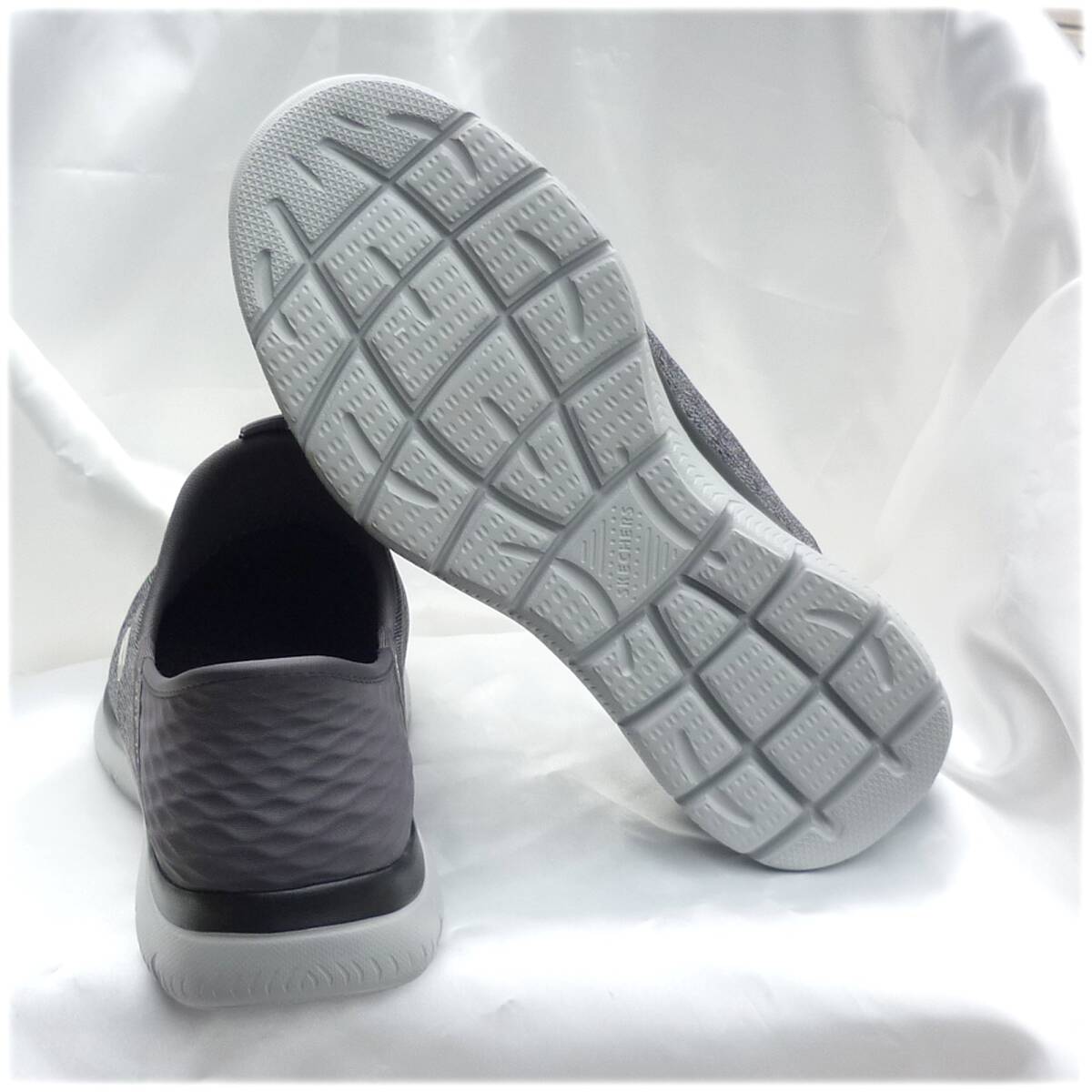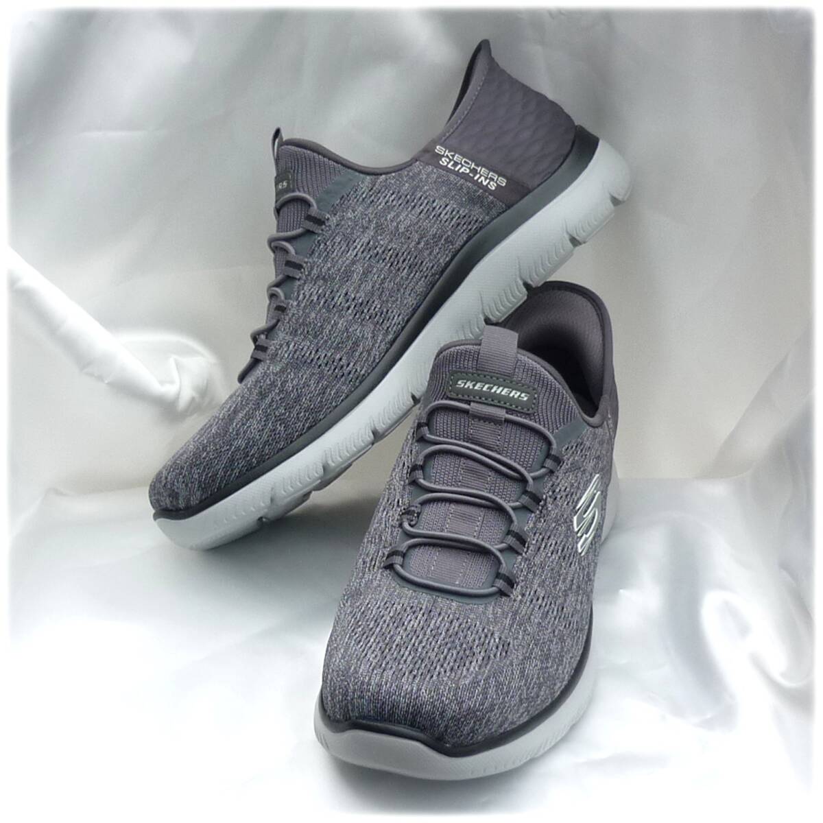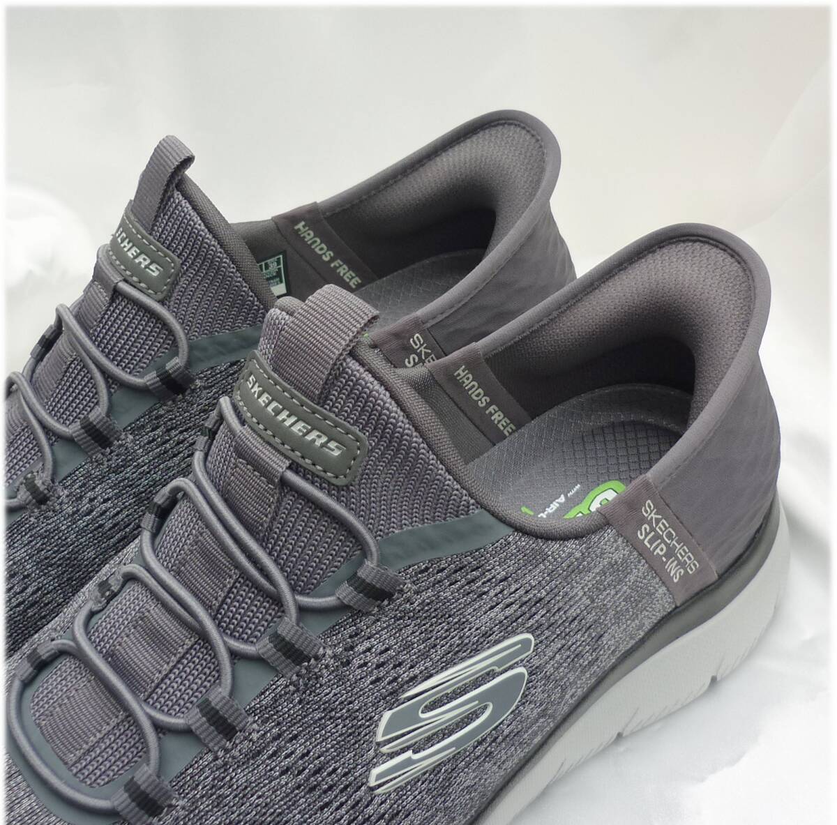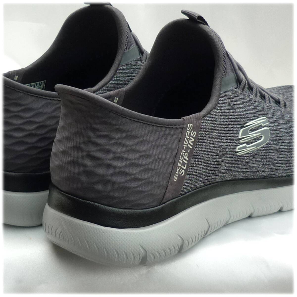 新品未使用品ですが箱なし商品です。試着等された可能性のある靴となりますので神経質なかたのご購入はお控えくださいませ。今、話題のスリップインズです。かがまず履ける。触らず履ける。手を使わず履けます。紐を結ばなくていいスリッポンタイプです。◎愛用者の感想です。ご参考に。「かかと部分にクッションがあり、きっちりフィットするのでとても脱げにくく感じる」「かかとをふまないので靴がかた崩れがせず長持ちする」独自のHeel Pillow(ヒールピロー)で足をしっかりと固定するヴィーガンシューズ。ストレッチレース付きのエンジニアードメッシュのアッパー、クッション性のあるSkechers Air-Cooled Memory Foam(エアクールドメモリーフォーム)のインソールが特長ですクッション性のあるSkechers Air-Cooled Memory Foam(スケッチャーズ エアクールドメモリーフォーム)コンフォートインソール100%ヴィーガン素材を使用ストレッチレース付きのメッシュアッパー軽量で柔軟性に優れた衝撃吸収ミッドソールフレキシブルでトラクション性の高いアウトソール洗濯機洗い可能スケッチャーズ正規品(直営店で購入) 品番232469W CCBK 511