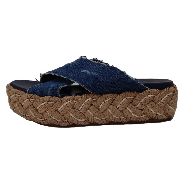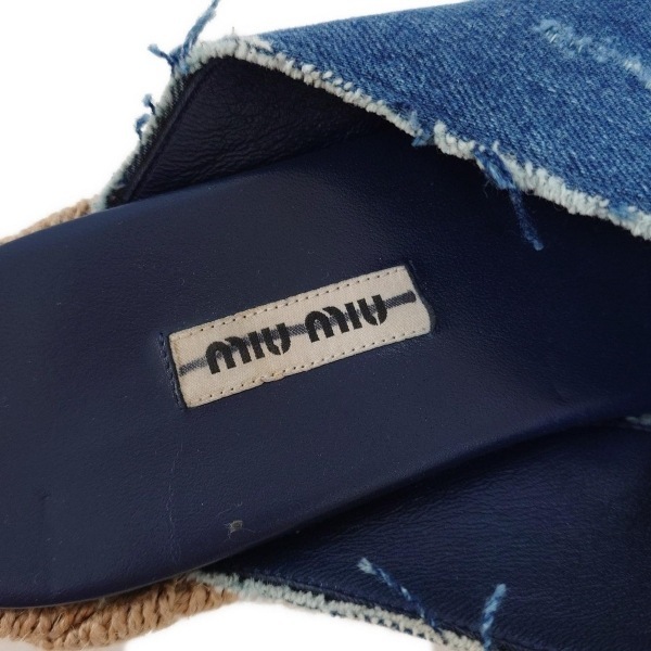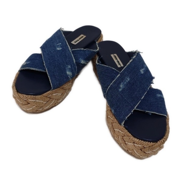 ミュウミュウ miumiu ミュール 40 - ネイビー レディース エスパドリーユ/ダメージ加工/厚底 靴