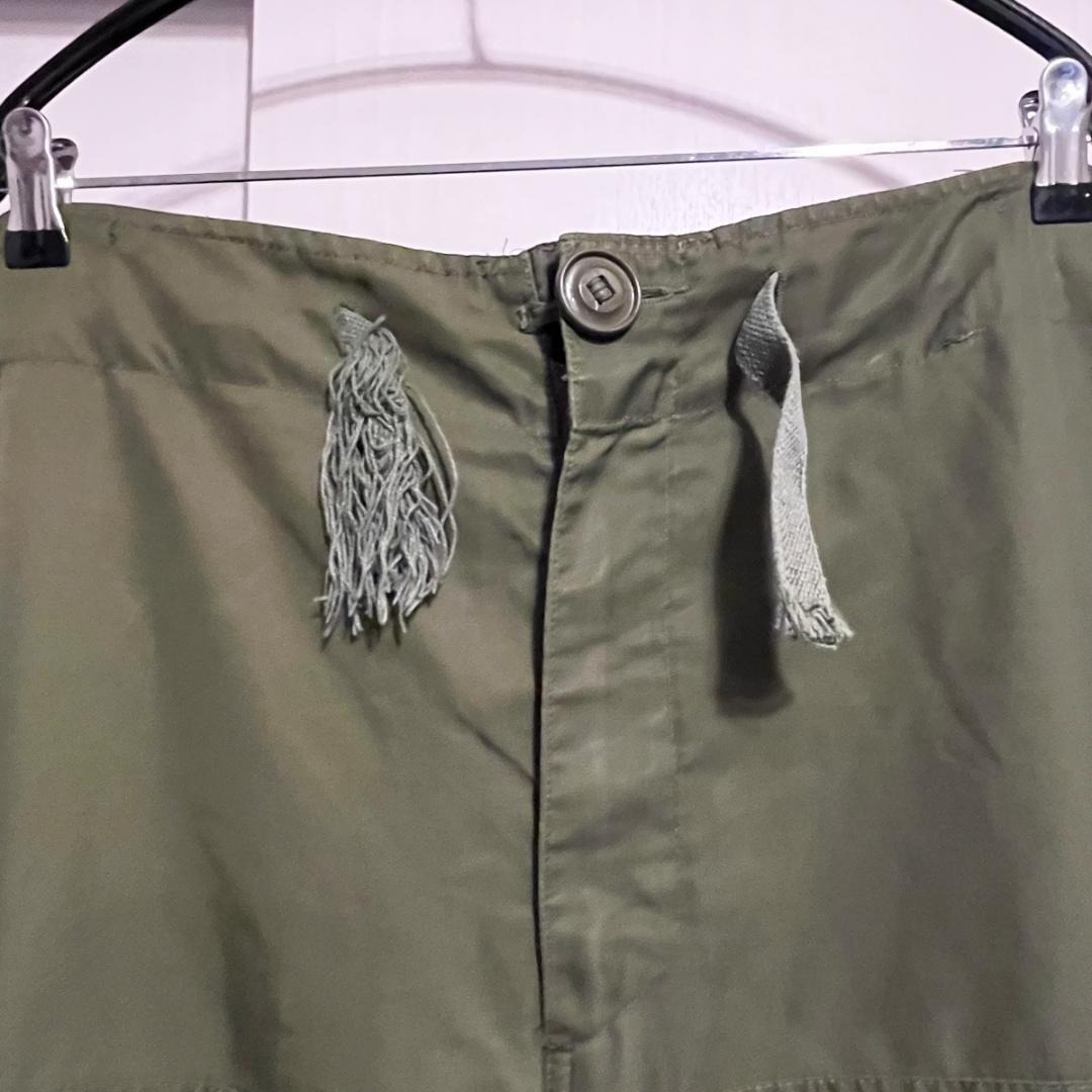#カナダ軍 の80年代ミリタリーパンツ。無地のカーキカラーが武骨で存在感のある一本です。オーバーパンツ仕様のため、ゆったりとしたシルエットで重ね履きにも対応可能。コットン素材のしっかりとした生地感で、耐久性に優れています。ミリタリーファッションやストリートスタイルに取り入れるだけで雰囲気のあるコーディネートが完成。ヴィンテージ好きにおすすめのアイテムです。