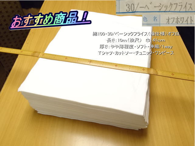 商品は、綿100・30/ベーシックフライス(輪仕様)オフ白でございます。