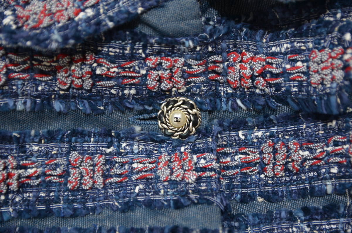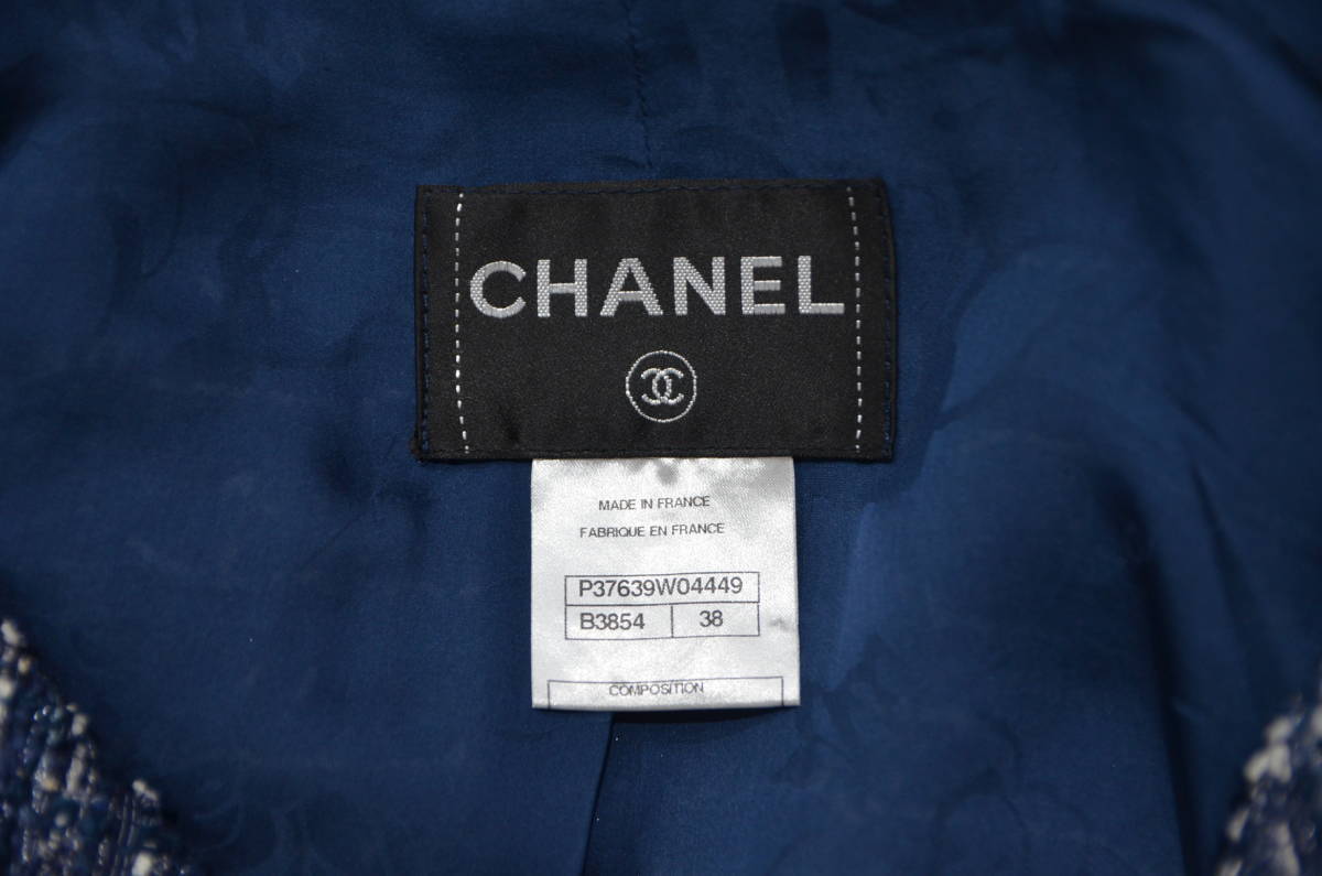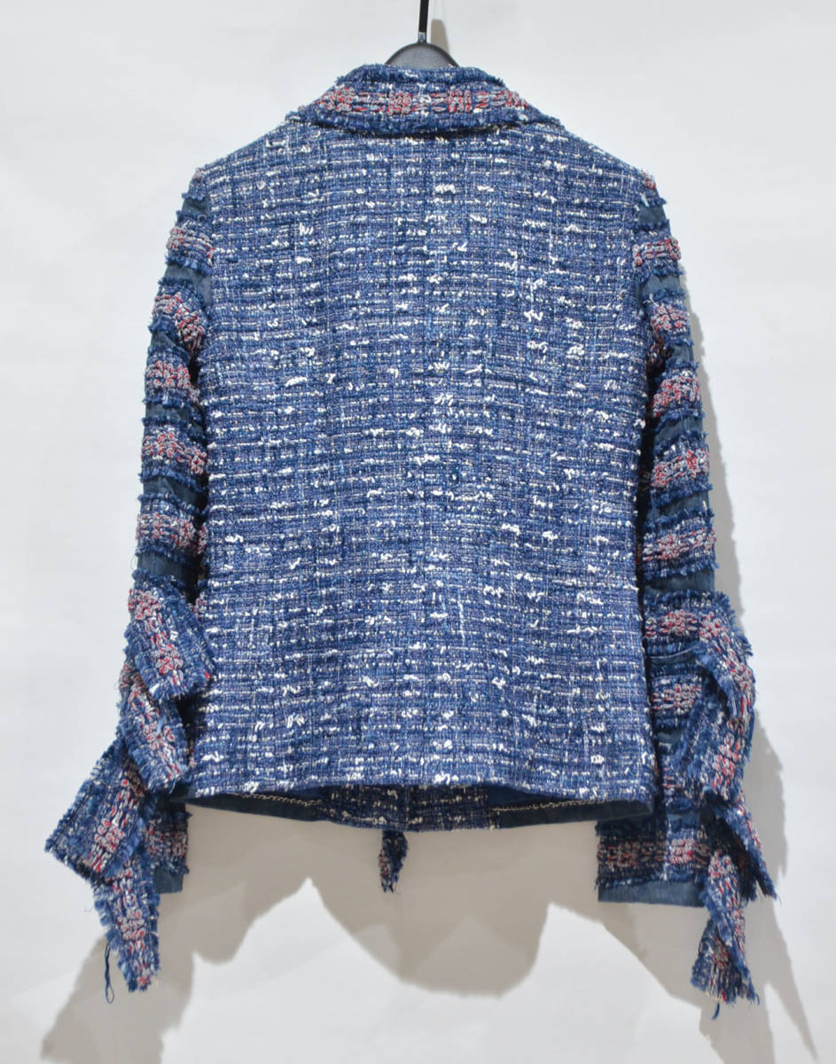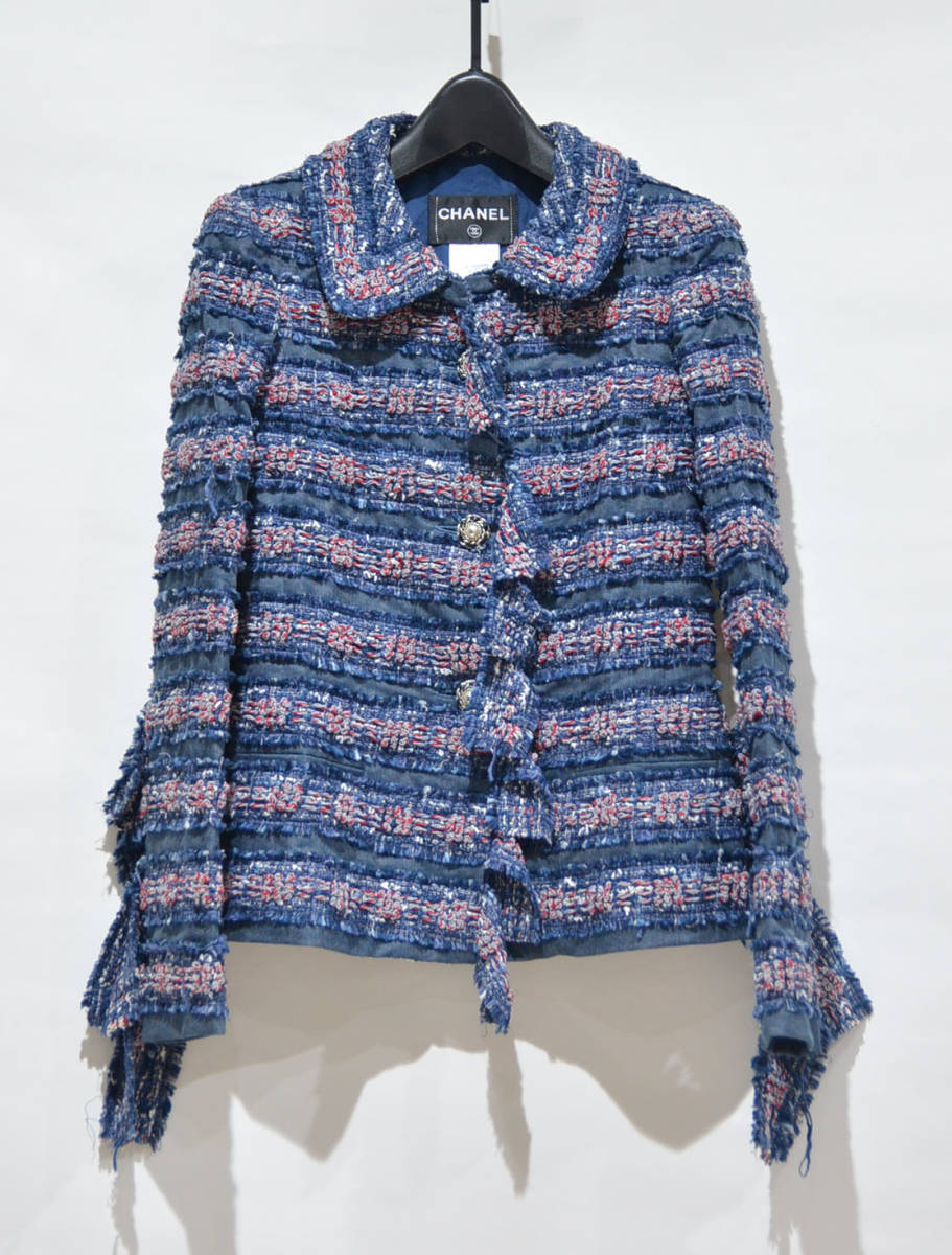 国内正規 CHANEL シャネル ココマーク ボタン 襟付き ツイード ジャケット ブルー 38 Y-304107