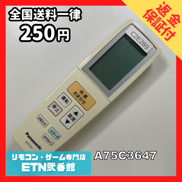 C2E289 【送料250円】エアコン リモコン / Panasonic パナソニック A75C3647 冷房 暖房 動作確認済み★即発送★