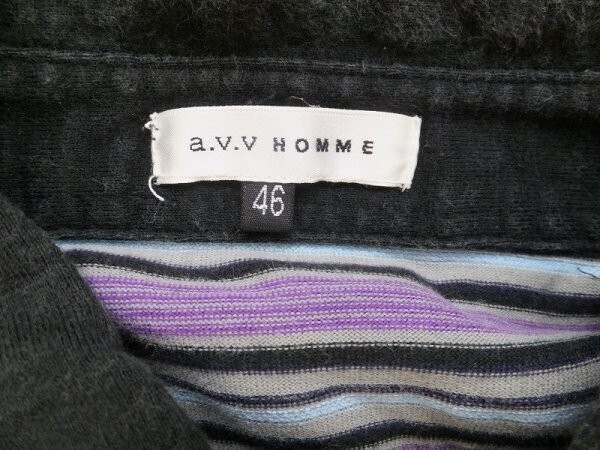 a.v.v HOMME アーベーベーオム メンズ ボーダー柄 半袖ポロシャツ 46 黒紫水色 です。