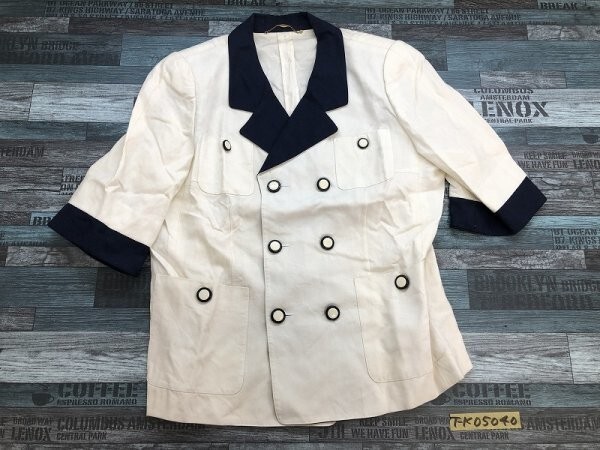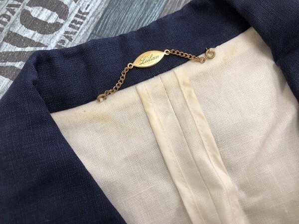 Leilian レリアン レディース リネン Wボタン 五分袖 ジャケット 15t 紺白 です。