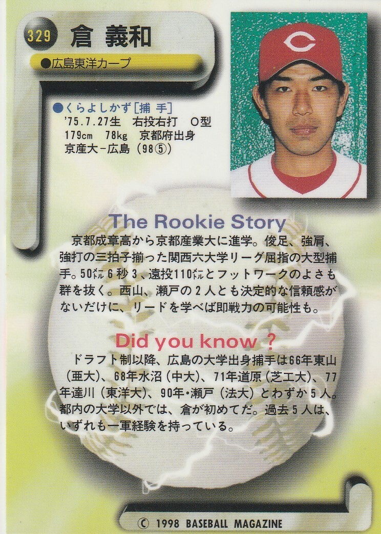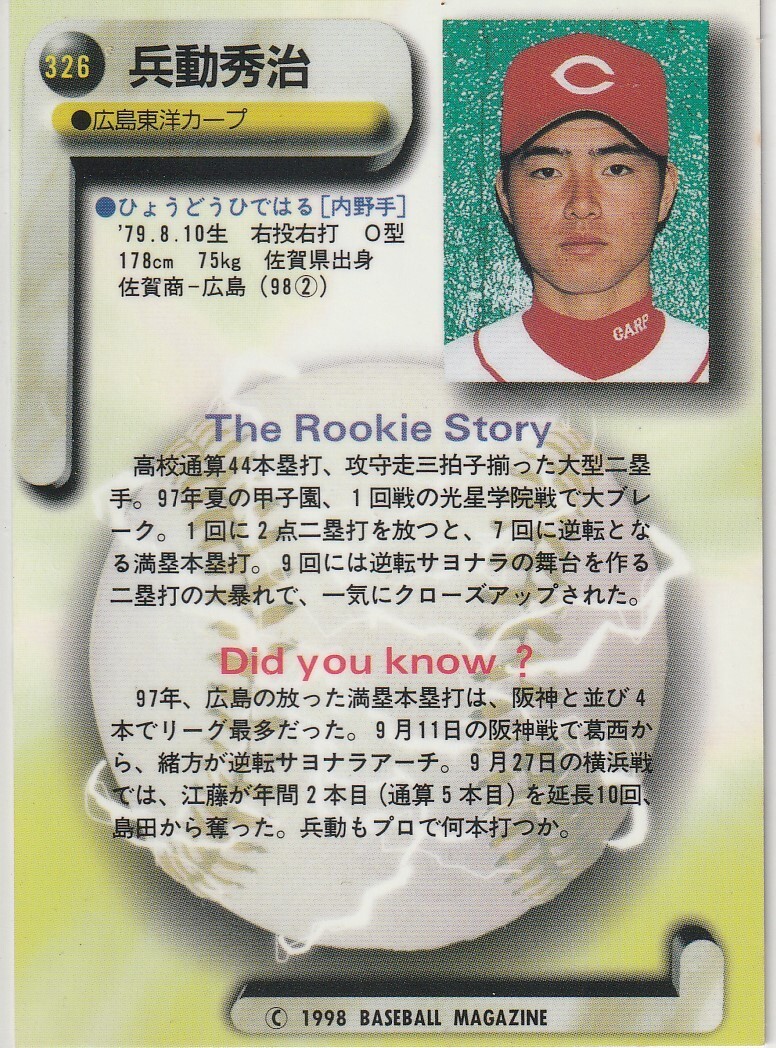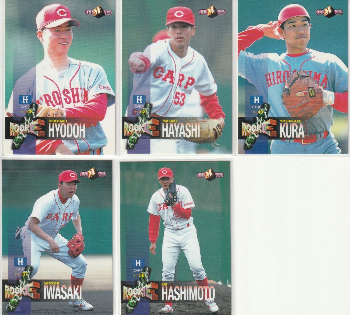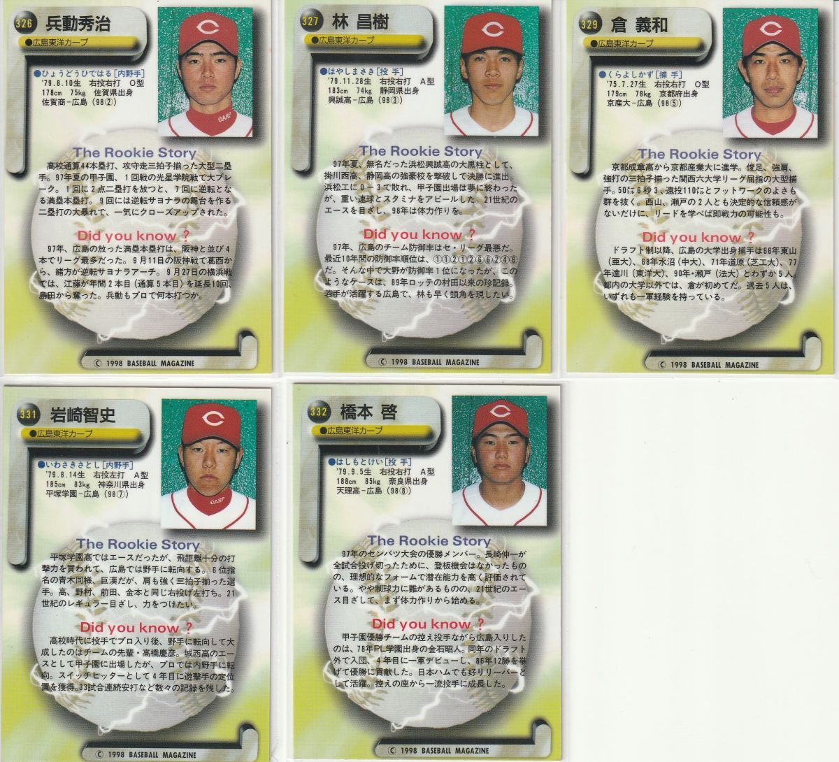●1998BBM【兵動秀啓,林昌樹,倉義和,岩崎智史,橋本啓】ルーキー No.326,327,329,331,332:広島 R