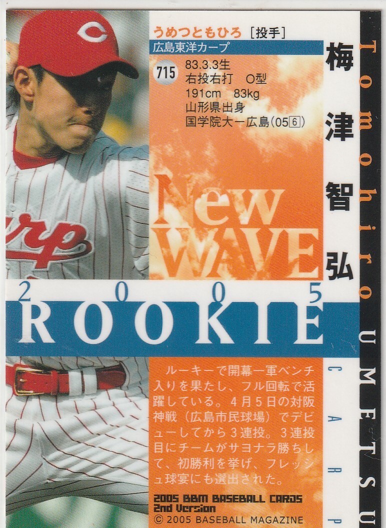 ●2005BBM/2nd【梅津 智弘】サブ版:ルーキー:New WAVE No.715:広島 130/260