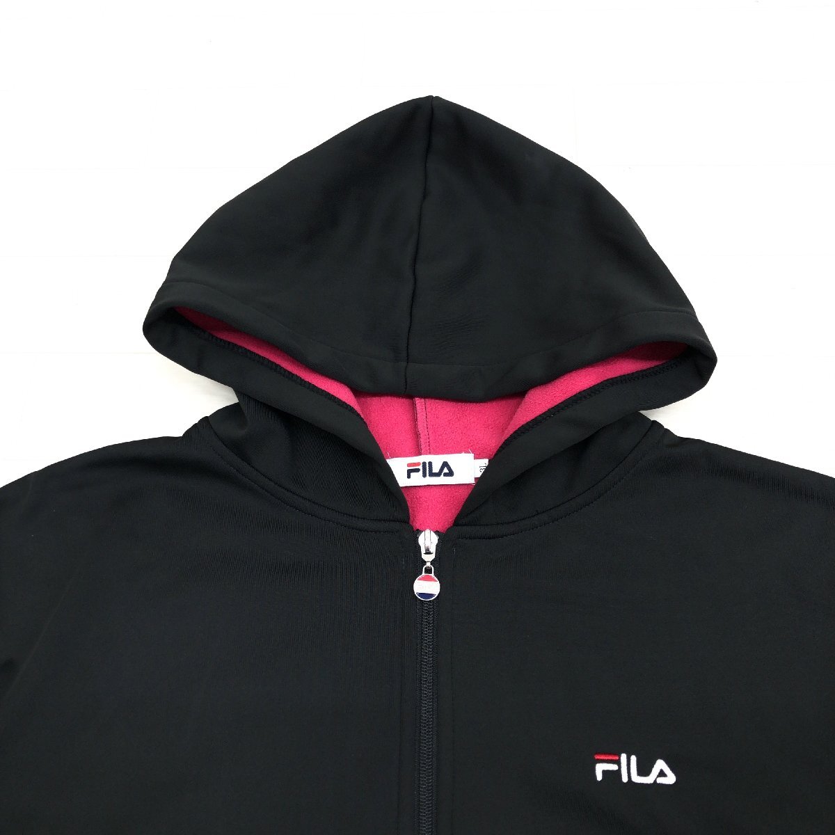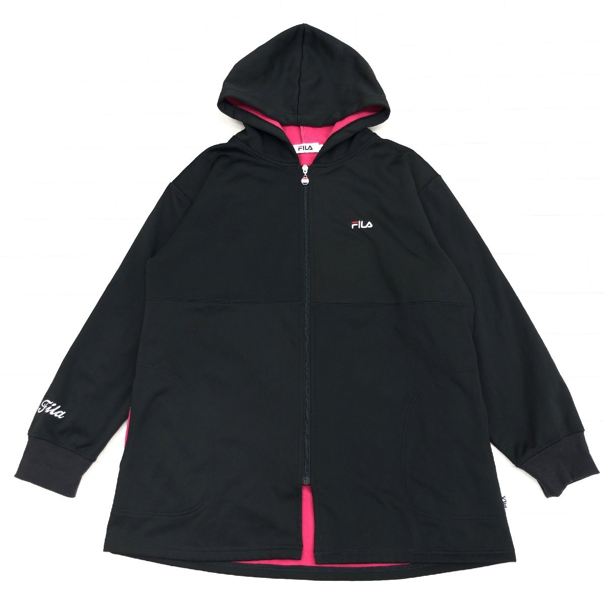●FILA フィラ ロゴ刺繍 裏フリース チュニック フーデット ジャージ ジャケット 3L 黒系 ブラック系 パーカー 2XL 大きい レディース 婦人