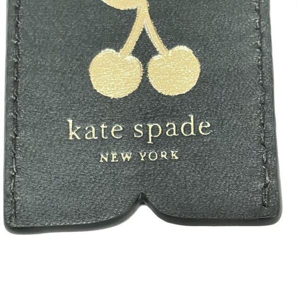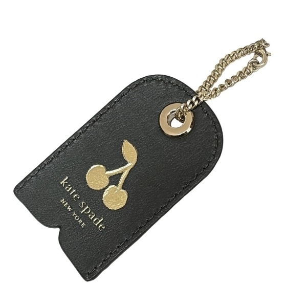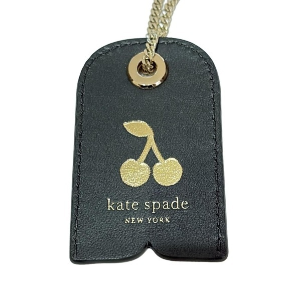 ケイトスペード Kate spade キーホルダー(チャーム) - レザー ダークグレー×ゴールド サクランボ 美品 キーホルダー