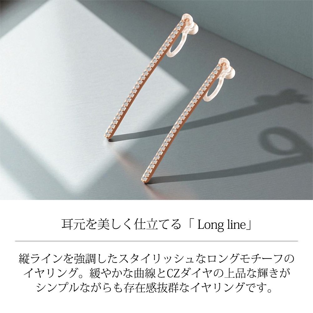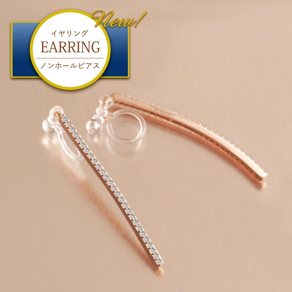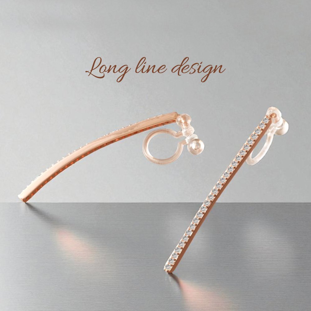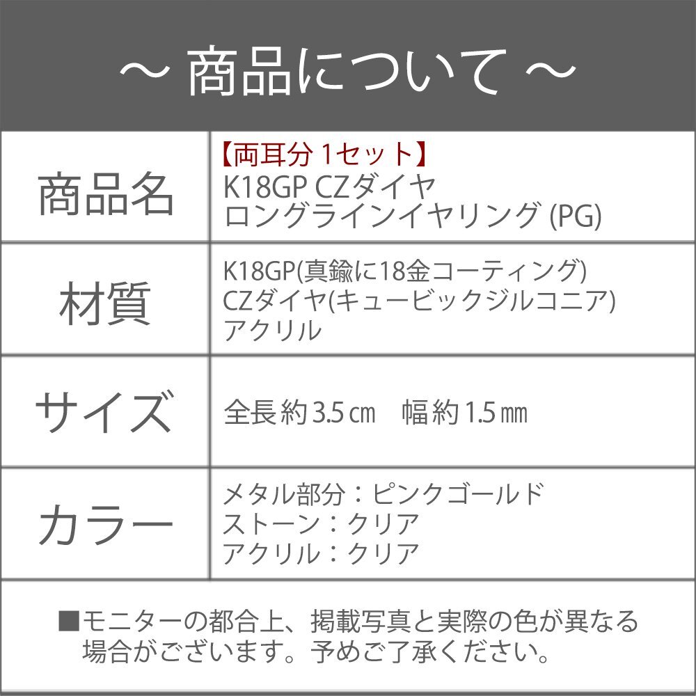 新品/イヤリング/K18GP/レディース/ロング/長い/シンプル/ピンクゴールド/18金/18kコーティング/ピアス見え/樹脂/金属アレルギー/ダイヤ/CZ