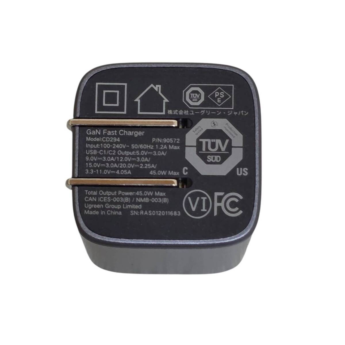 【1円オークション】UGREEN Nexode Mini 45W 充電器 USB-C 2ポート 折畳式プラグ 超小型 CD294 BAS1988