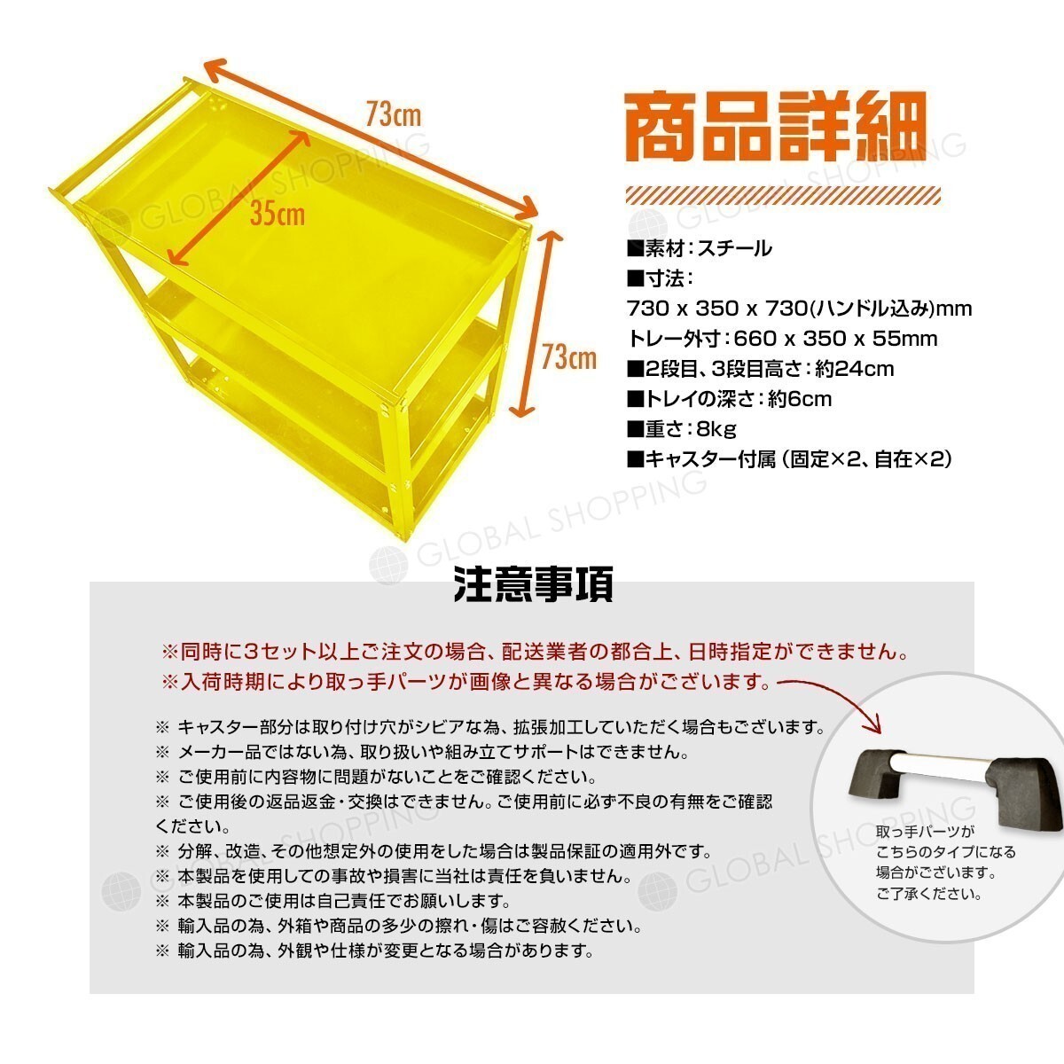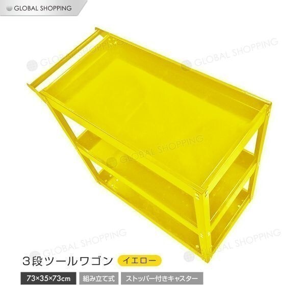 ツールワゴン 3段式 工具 ツールカート 工具ワゴン ワーキングカートワゴン 工具カート 工具箱 ツールボックス キャスター 整備用ワゴン 黄
