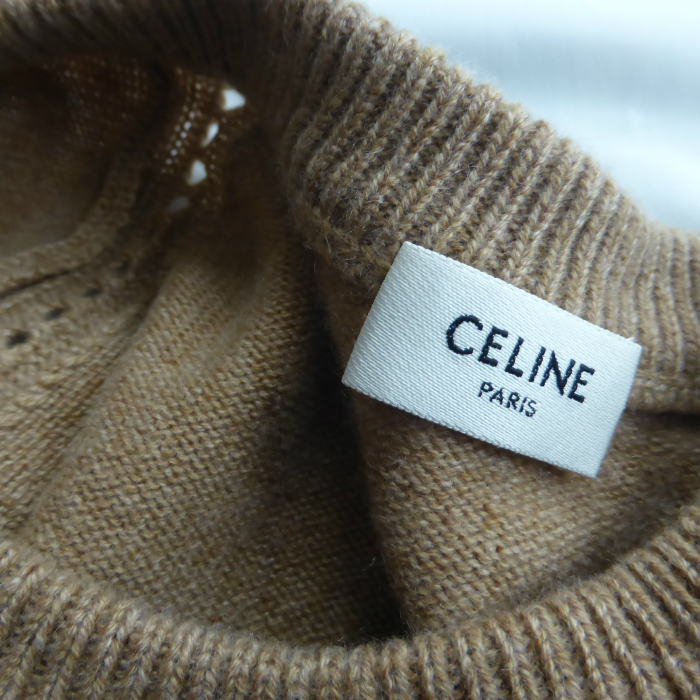 セリーヌのカシミアニット。 肌触りの良い上質なカシミア素材のニットは、クルーネック仕様のシンプルなデザイン。 厚手の生地感で、高級感が漂う逸品です。 シンプルで流行や飽きのこないデザインなので自分らしいエッセンスをプラスしてみてはいかがでしょうか。 |