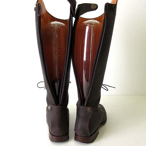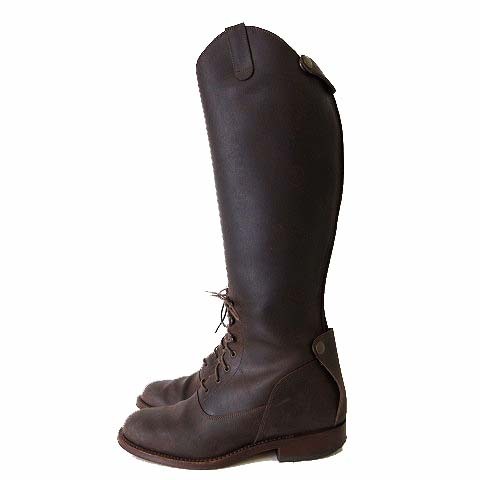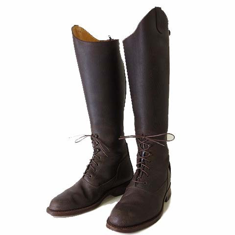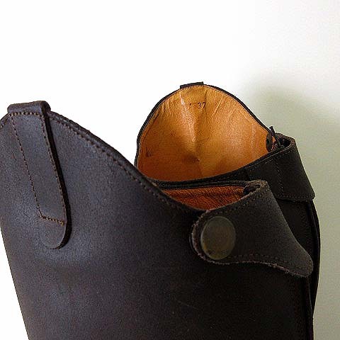 スペイン製 GOOD YEAR WELTED 製法 ジョッキーブーツ ロングブーツ 本革 レザー バックジップ 37 こげ茶色 23.5cm くつ 靴 シューズ
