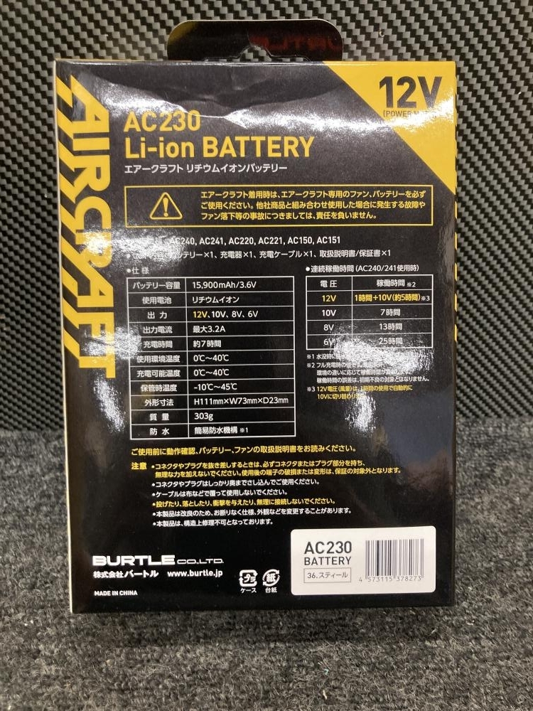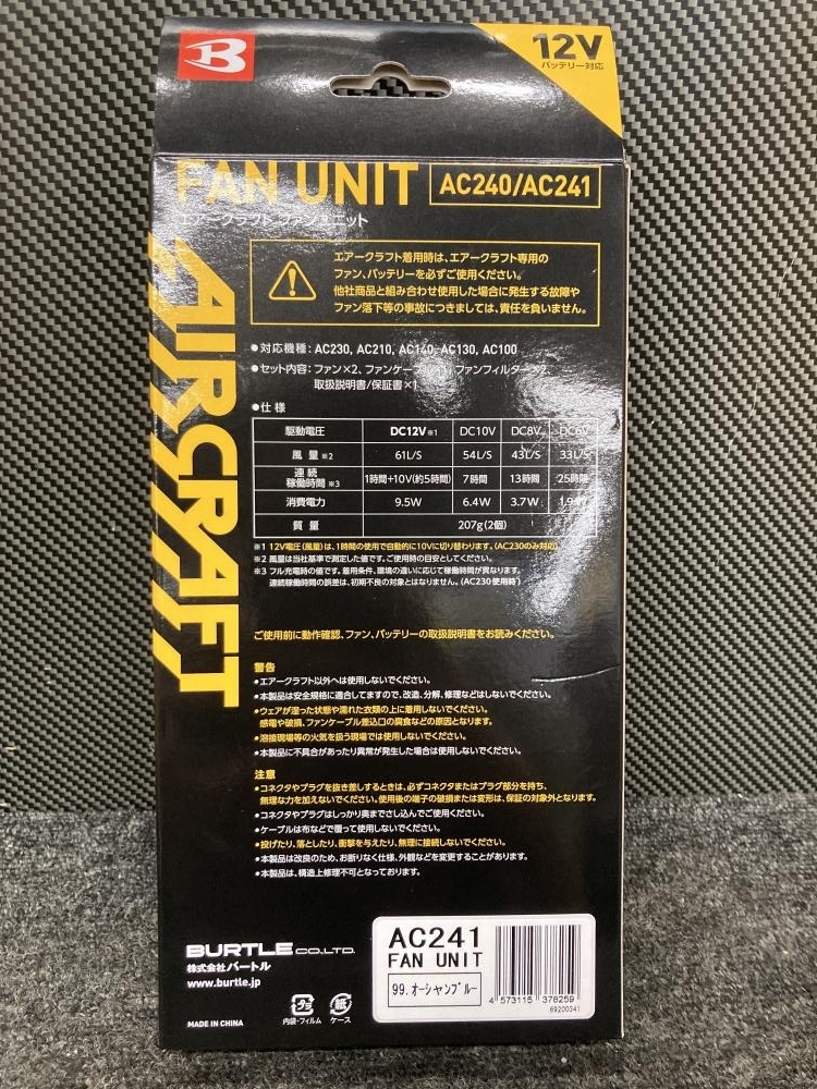 BURTLE バートル ■商品名 空調服用ファン+バッテリー+空調服 ■型番 AC230+AC240+AC7146 |