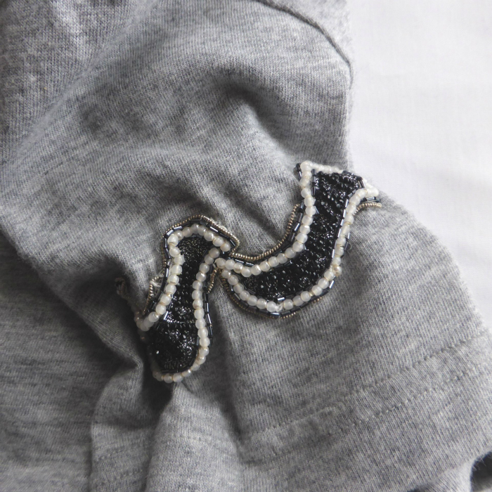 身頃に毛羽感、ビジューの塗装はげが見受けられますが、まだまだお使いいただけるお品です。 |