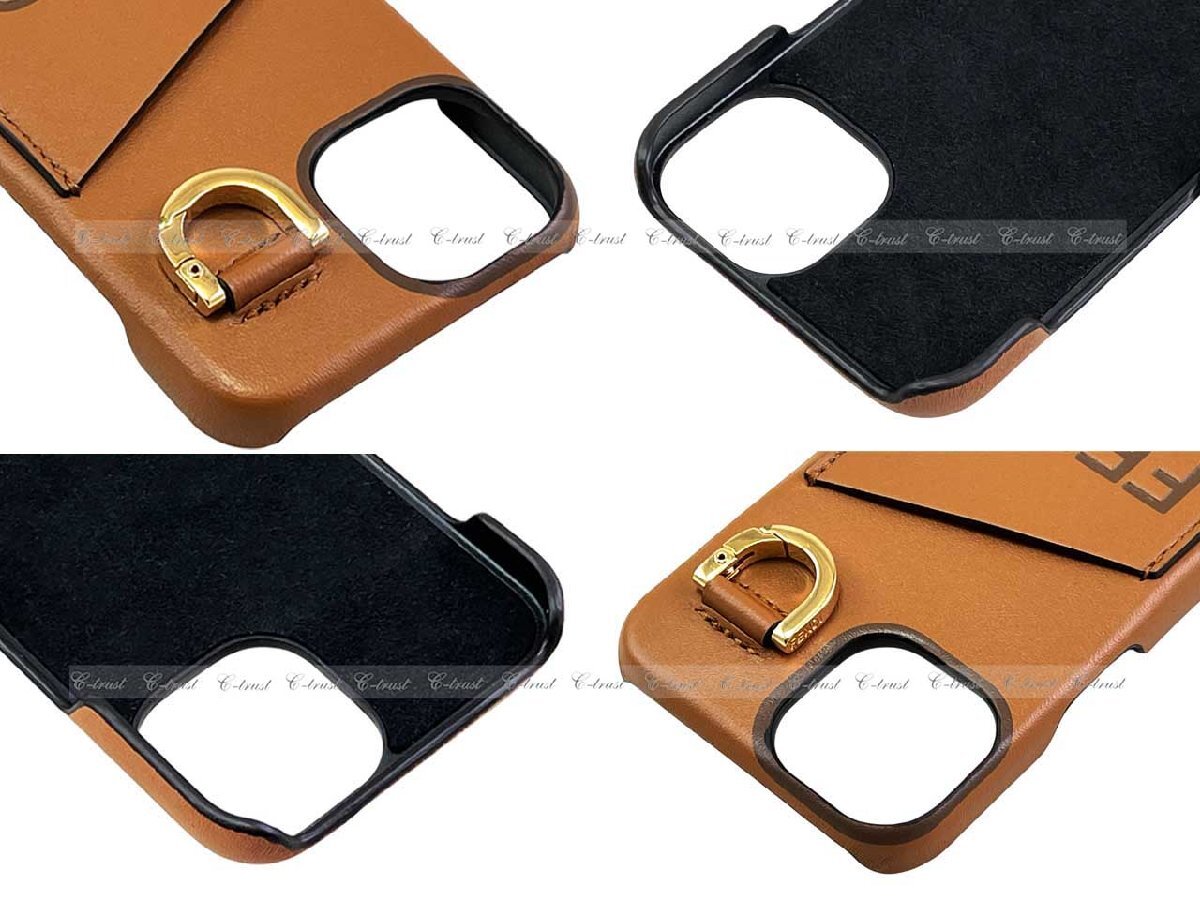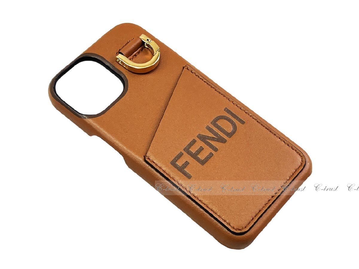 L657.. FENDI フェンディ iPhone 14 ケース アイフォン スマホ ラム レザー ロゴ イタリア製 7AS183AP9PF1C6J ★ ブラウン