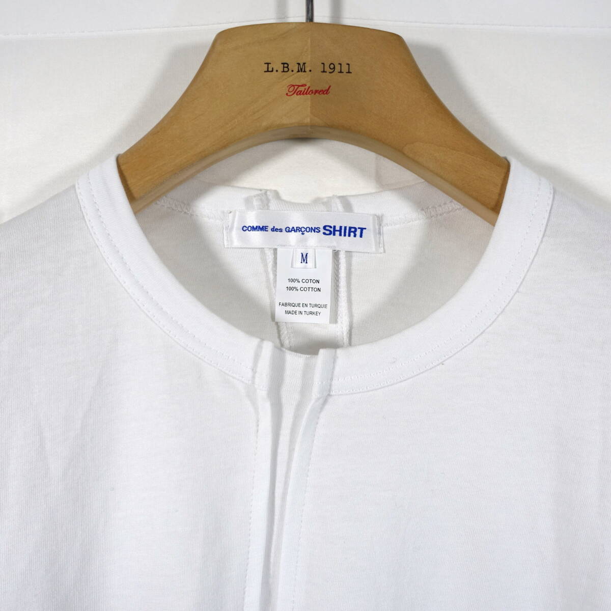 カットソーを前後で斜めに切り、もう一度縫製し直したようなデザインがギャルソンらしいモード感です。