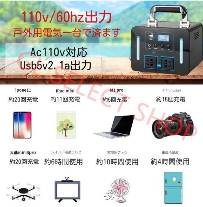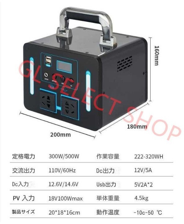 アウトドアモバイル110V電源大容量300Wポータブルバッテリー大容量320wh 家庭用バッテリーキャンプ防災用品 (A450)