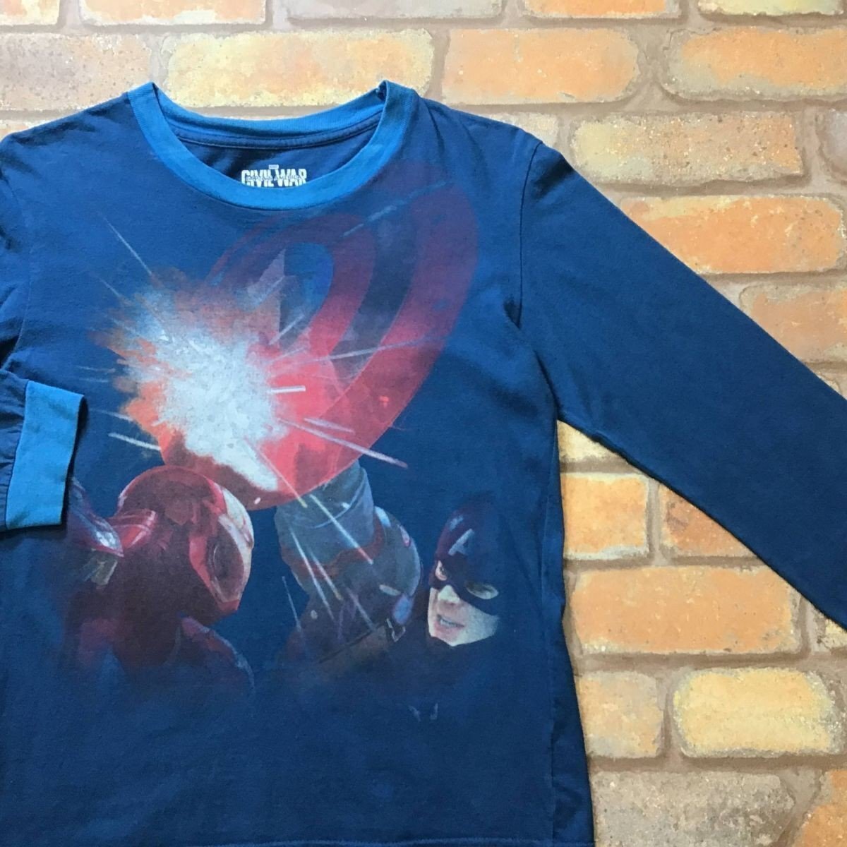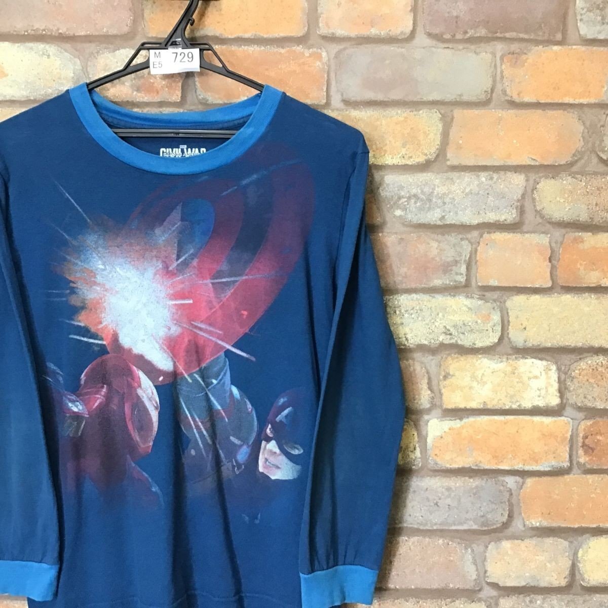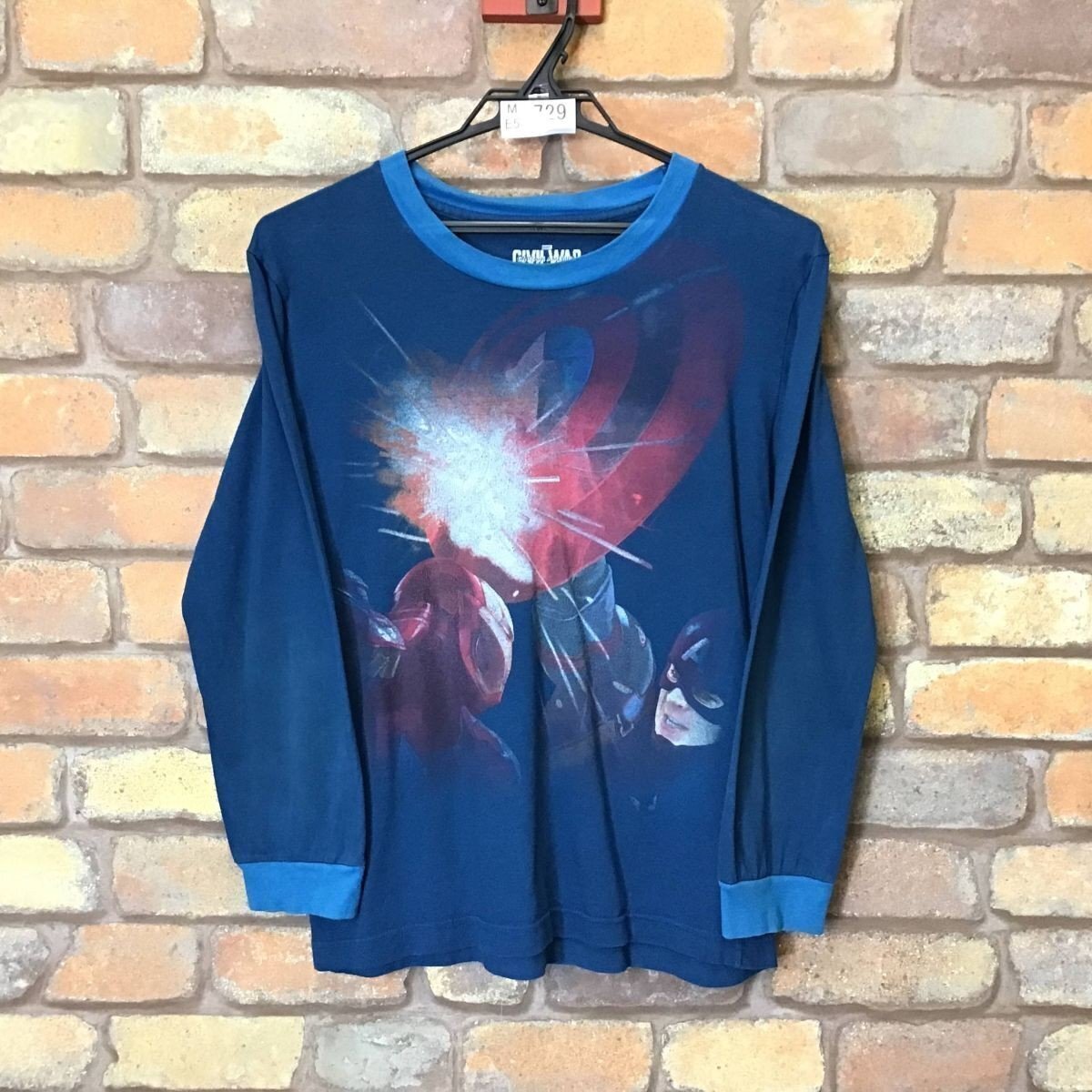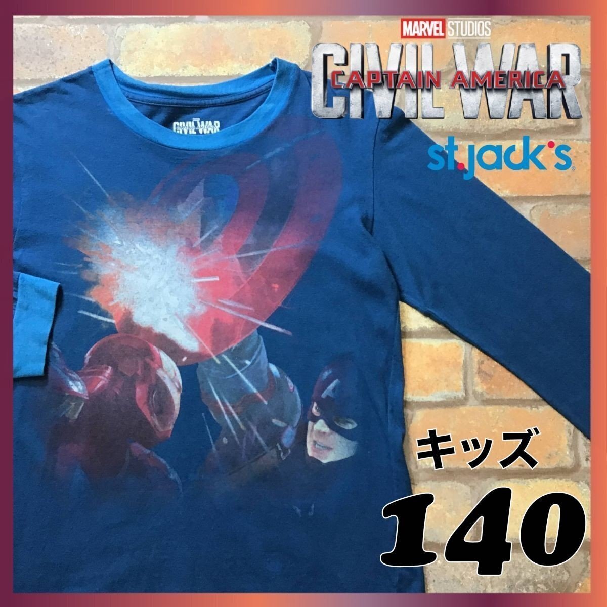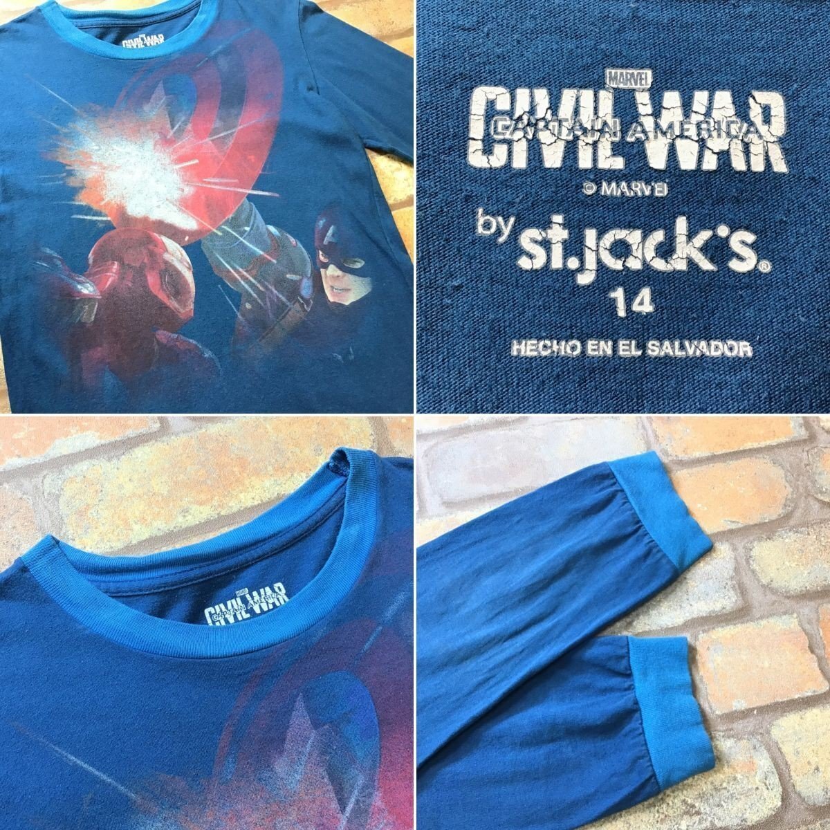 合計落札金額¥8,000円以上で、、、 送料無料!! ※こちらからの[合計支払い金額通知]をご確認の上、お支払い下さい♪ -------------------------------- 【 MARVEL×St.Jack's 】 映画 Civil War BIGプリント 長袖 Tシャツ ● USA輸入・正規品 ● ● 海外サイズ規格 ● -------------------------------------------------------- ◆ 商品説明 ◆ ・首と両袖に薄いヨゴレ、変色有り。 ◎映画 Civil War(シビル ウォー)BIGプリントTシャツ。 首と袖口は、少し明るい色になっています。 本場アメリカ直輸入の1着、ファンの方是非是非♪ 「Whose Side Are You On?(君はどちらの味方だ?)」 -------------------------------------------------------- ◆ サイズ ◆ 14 ※海外規格品の為、下記実寸のご確認をお願いいたします。 ◆ 実寸 ◆ 肩幅:43cm 身幅:45cm(両脇下間を計測) 着丈:57cm(背面襟元~裾を計測) 袖丈:52cm ※素人採寸の為、多少の誤差はお許しください。 -------------------------------------------------------- ◆ 素材表記 ◆ コットン 100% ----------------- | |||||