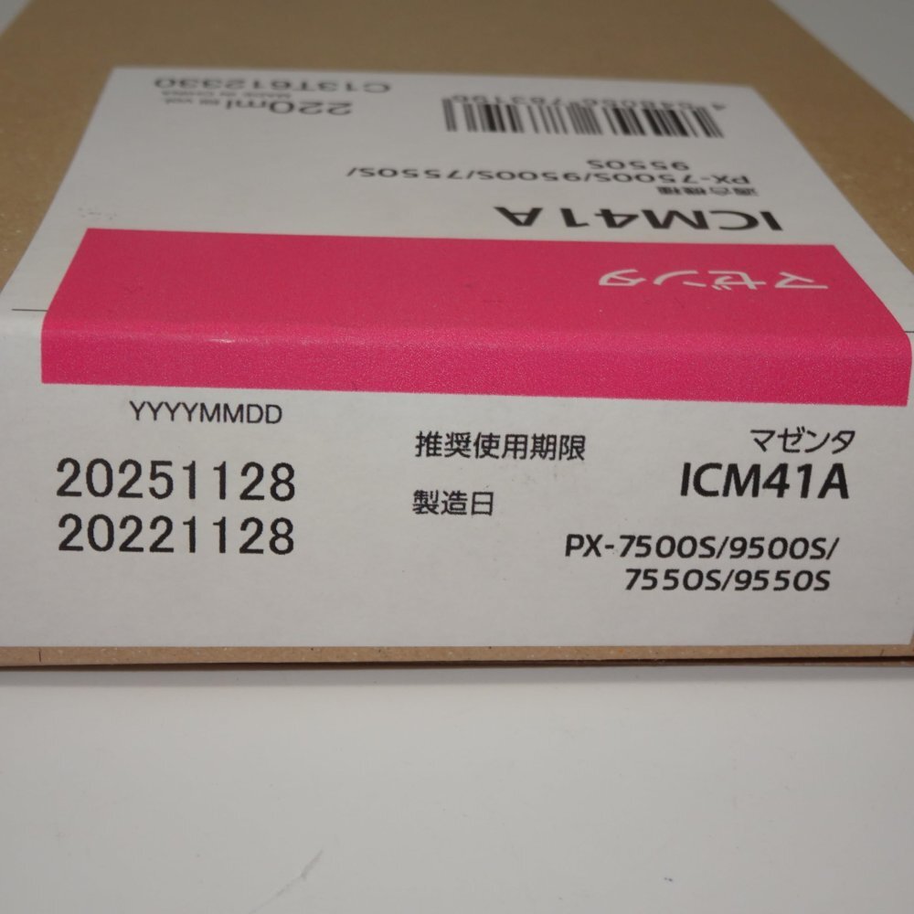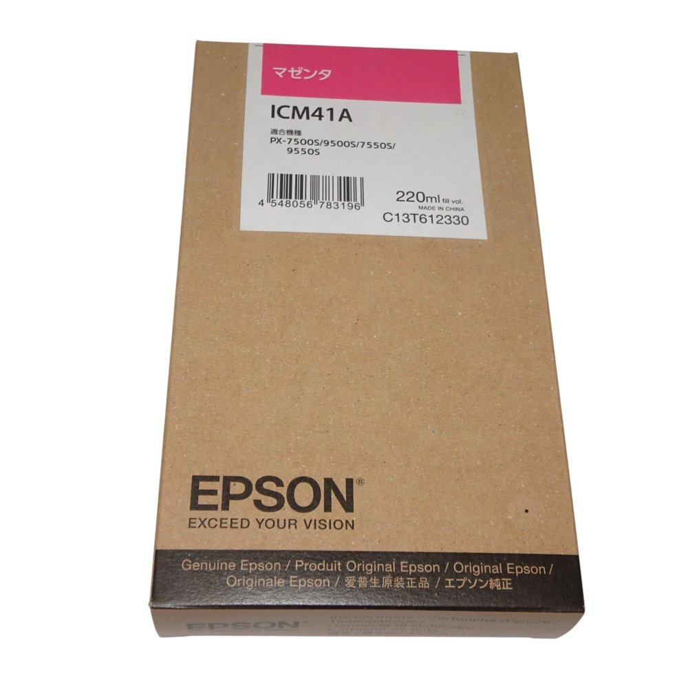 | 商品の説明 (新品の場合) | 商品の説明 ●仕様/メーカー純正インクカートリッジ ●カラー/マゼンタ ●対応機種/エプソン:PX-75SCAD2/PX-75SCFP2/PX-75SNOB2/PX-75SPOP2/PX-75SSCI2/PX-75SSCW2/PX-755SC4/PX-955SC4/PX-7500S/PX-7550S/PX-9500S/PX-9550S ●単位/1個 ●メーカー品番/ICM41A ご注意(免責)>必ずお読みください ■在庫あり、メーカー国内純正品となります。外箱未開封未使用若干汚れあり・推奨使用期限2012年1月 ■ご注文確定後、弊社在庫品に引きあたりましたら、弊社1~2営業日に商品を、発送させて頂きます。(納品から30日以内) (メーカーが不良と認めた場合のみ) ・取寄せ品の返品は不可となります。 ・初期不良については交換又は返品対応致します。 ・プリンター本体の保障は致しかねますのでその辺をご理解のうえご購入ください。 ・お客様の商品間違いの返品は一切お受けできませんので、商品をご確認頂きご注文ください。 |